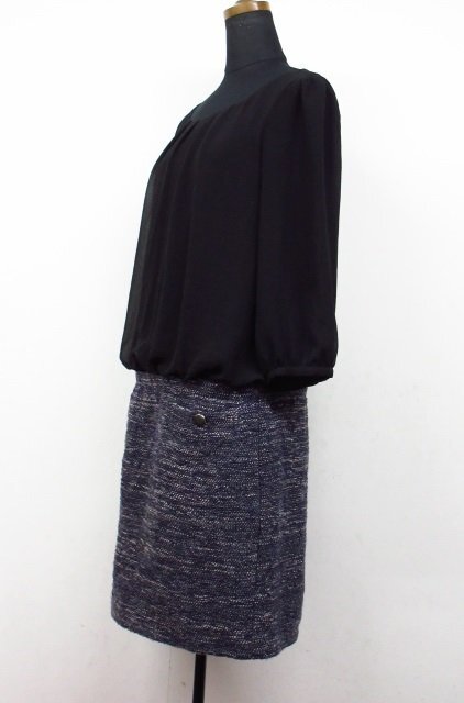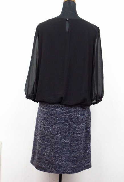 y5066 美品 INDIVI ドッキングワンピース 38サイズ 上半身 薄手 透け感スリーブ ニットスカート 日本製 インディヴィ