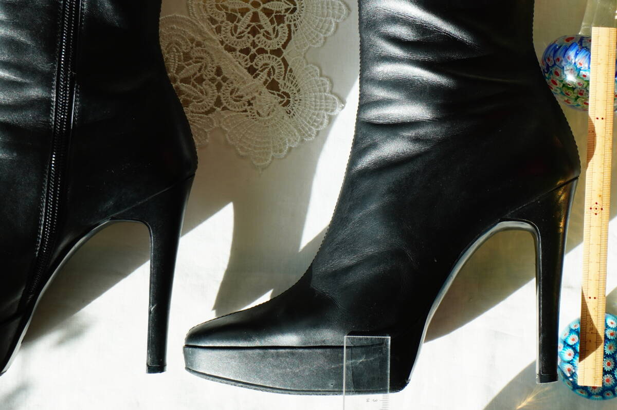 艶めく滑らかレザーが筒上まで自立する ラウンドスクエアトゥ 厚底ハイヒールロングブーツ(36=23.5cm)です*(#^.^#)