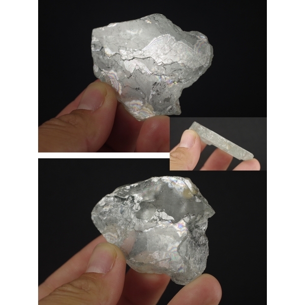 石自体は板状で、壁開面の平らな部分があり、原石のままですが研磨したような艶があります。