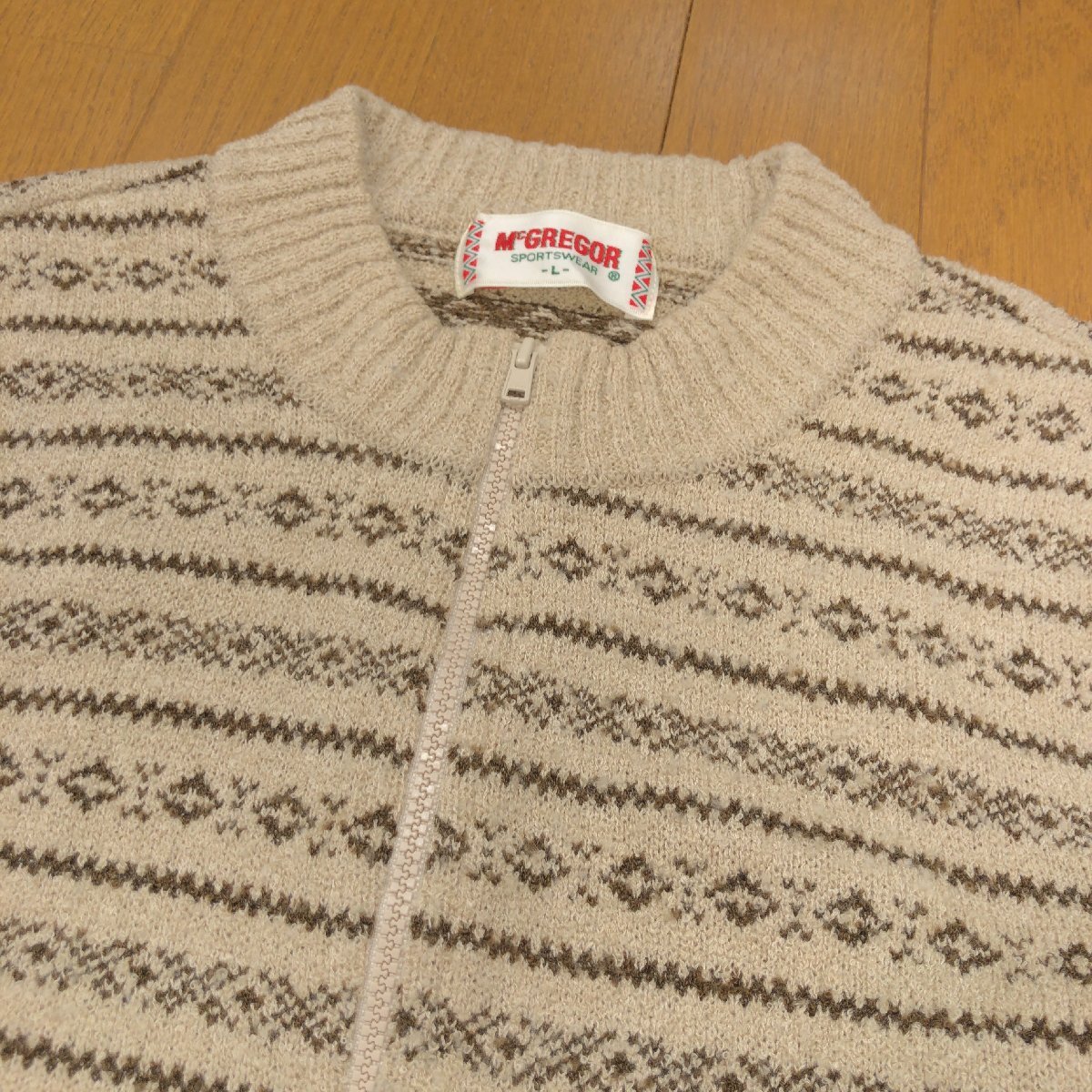 McGREGOR マックレガー ウールブレンド ジップアップ ニット カーディガン L ベージュ 日本製 羽織り ジャケット レディース マクレガー