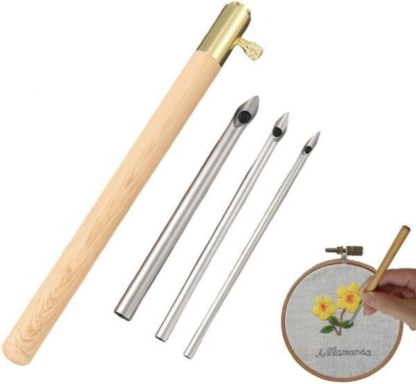 【 送料無料 】Freell ◆パンチニードル 木目調 針 3本セット 糸通し付き 刺繍 刺しゅう 手芸 ニードルパンチ 初心者 ハンドメイド☆