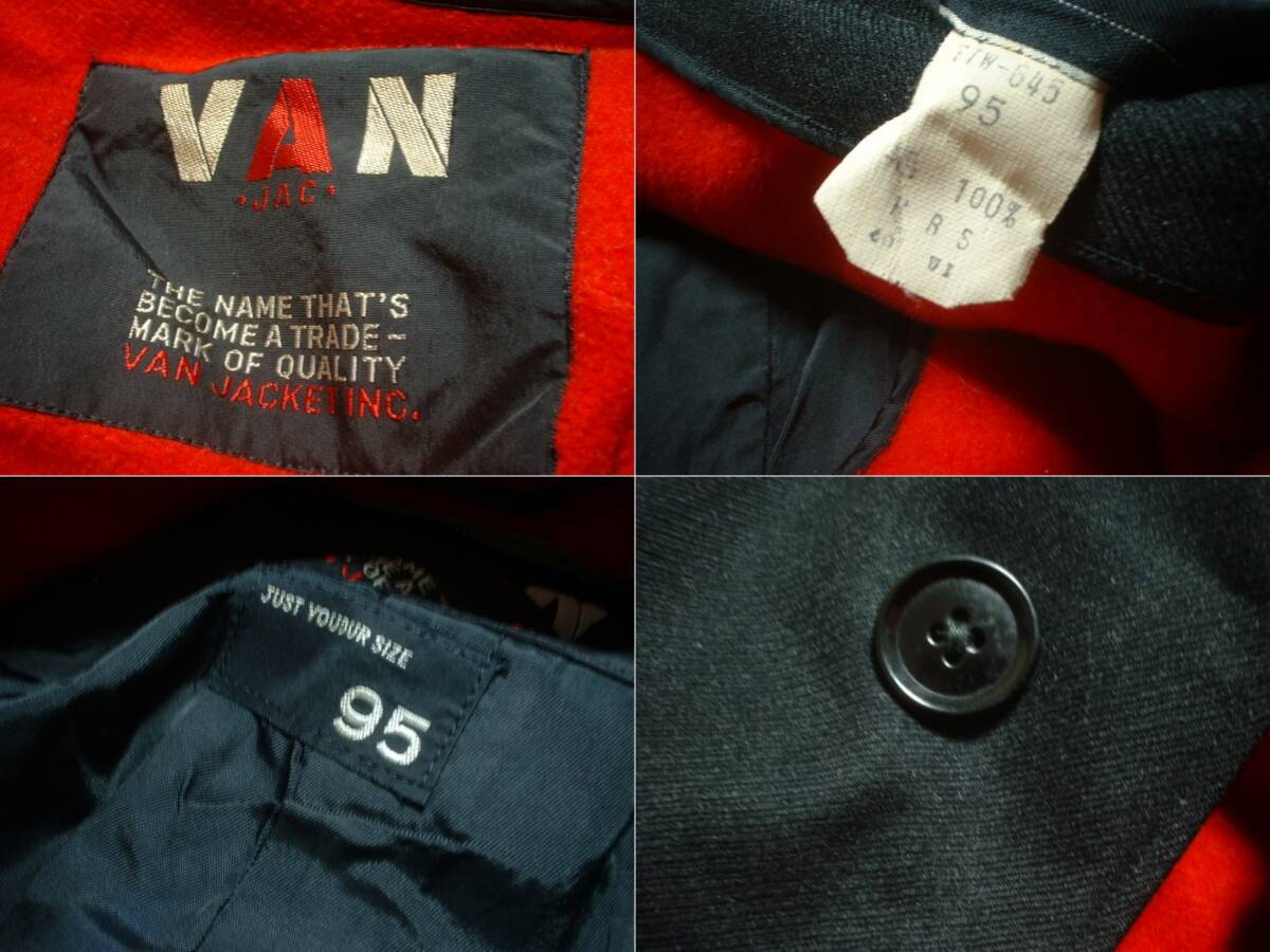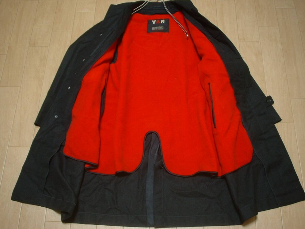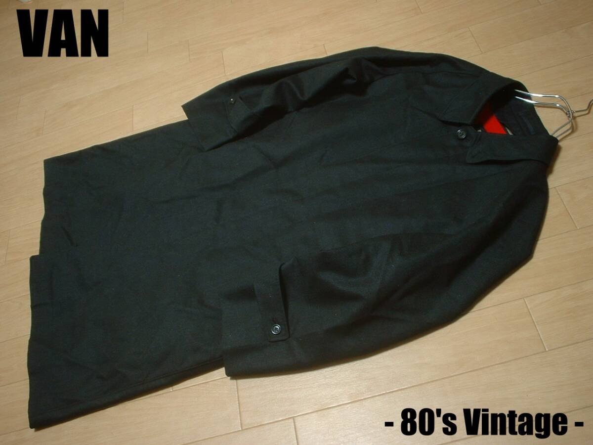 80sビンテージVAN JACKET INC.着脱ブランケットライナー付きウールステンカラーコートL黒ブラック正規バンヴァンVINTAGEジャケットアイビー