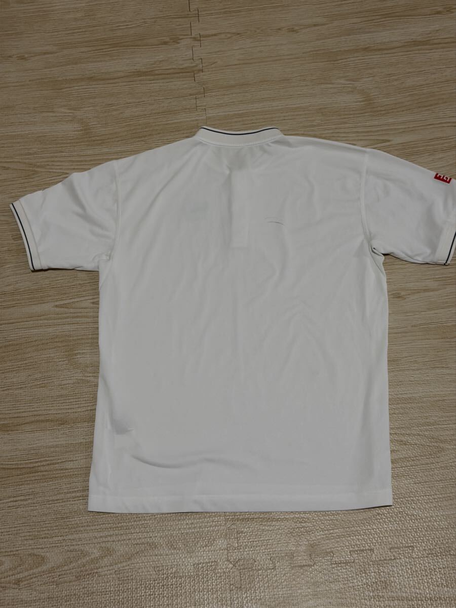 サイズはMサイズ。五回程度の着用ですが、背面に黒い汚れが目立ちませんがあります。写真五枚目でご確認ください。
