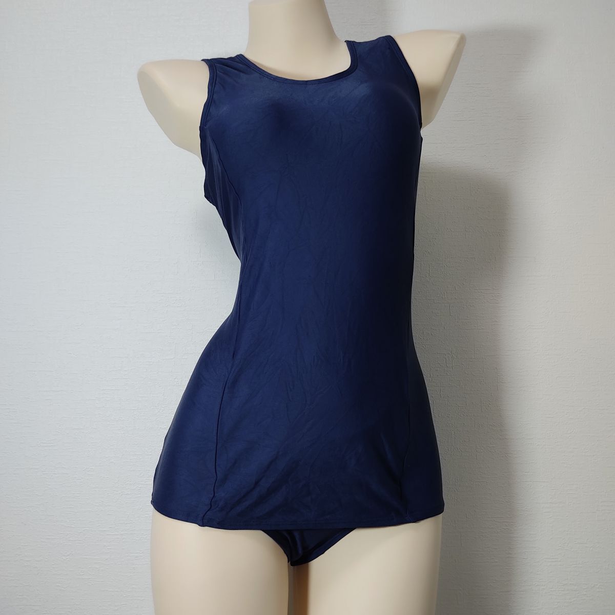 14【リサイクル品】フットマーク女子競泳水着(3L)★前スカート光沢ネイビー濃紺★伸縮性あり大きいサイズ男性も