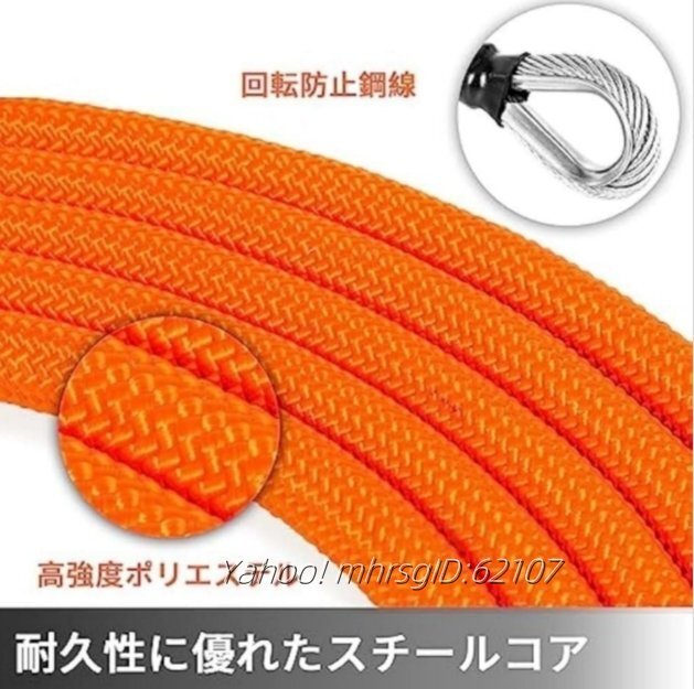 仕様】長さ:3m、1.4kgです。直径:12mm、素材(内側):19ストランド鋼線編み、素材(外側):ポリエステル 、カラー:オレンジ