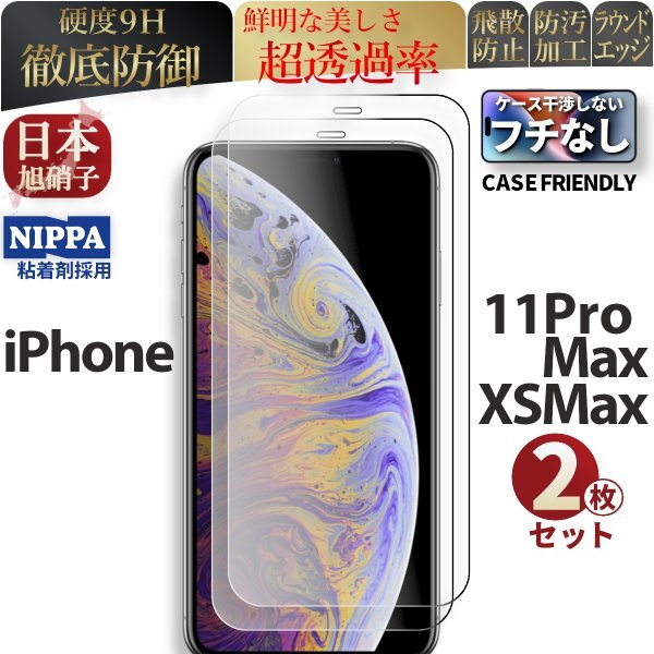 "良いモノを安く" の極み2枚セット旭硝子素材採用 iPhone 11 ProMax XS Max 対応強化ガラスフィルムです 。