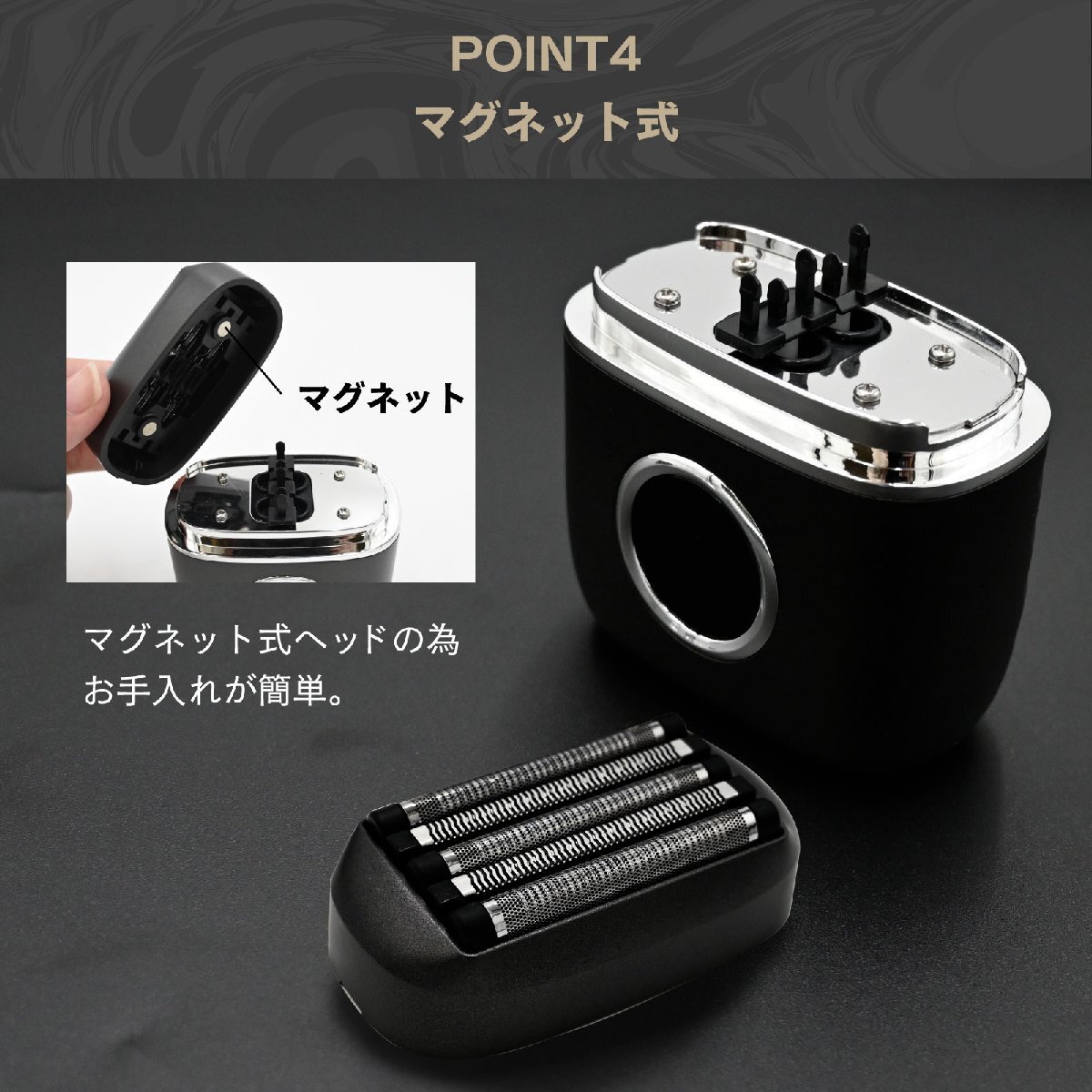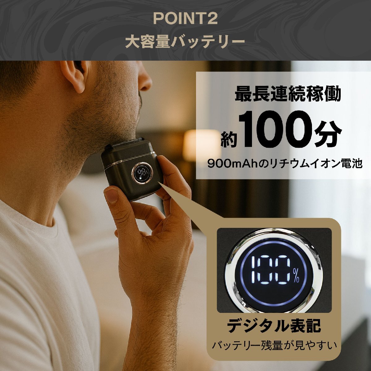 充電残量を確認できるデジタル表示、マグネット式ヘッド、誤作動を防ぐロック機能を搭載。