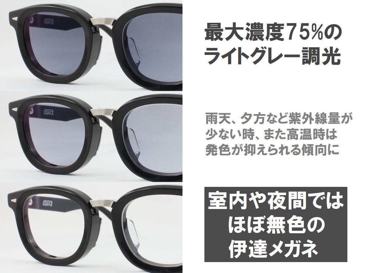 大人気のHYPE ハイプ メガネフレームにライトグレー調光レンズを入れ替えた度なしサングラス!