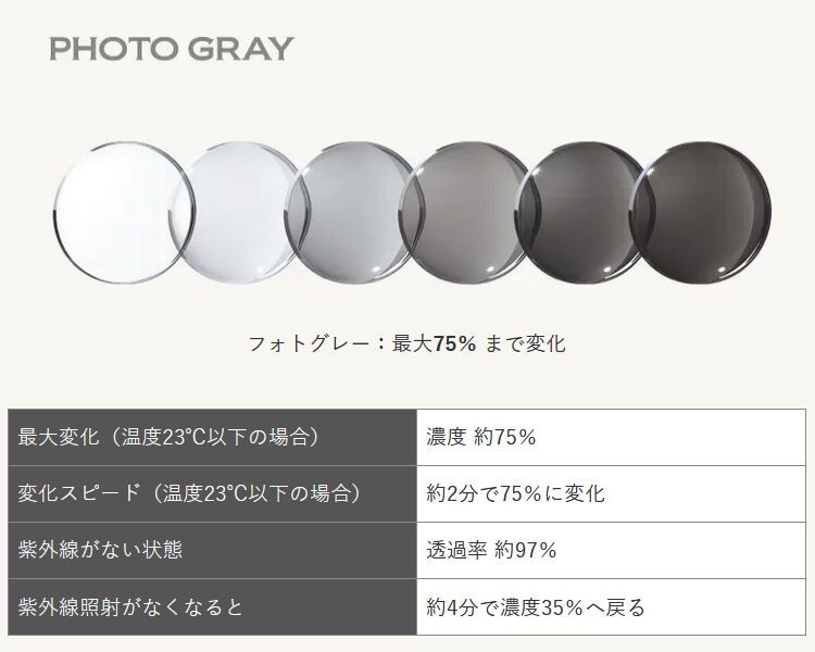 レンズカラー:ライトグレー調光(可視光線透過率約75%-5%)