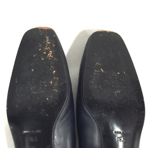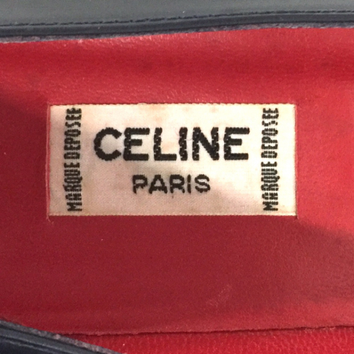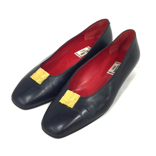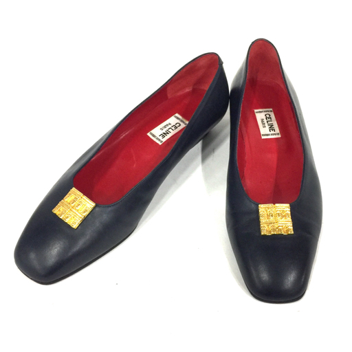 | セリーヌ 35 1/2 レザー パンプス ゴールド金具 レディース ネイビー シューズ イタリア製 CELINE |