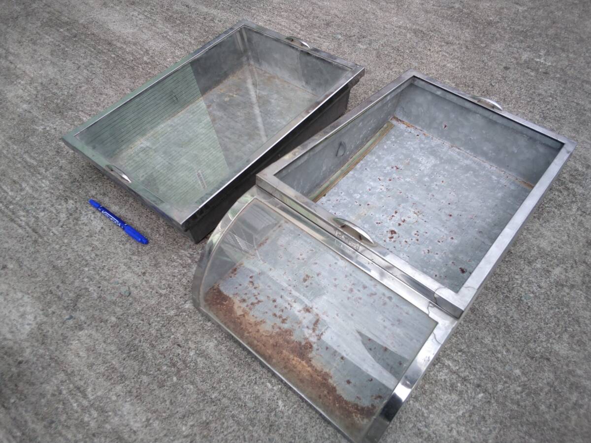 【商品説明】こちらの商品は、アルミケースになります。当時物です。2個です。1個上ブタのガラス無し。経年による汚れ、小傷、スレ、サビ、色褪せ、シミ、等ございます。神経質な方はご遠慮下さい。その他何か見落としがあるかもしれません。譲り受けたままの状態です。こちらは、引き取り可です。発送はゆうパック着払いです。白く写っているのは光の反射によるものです。下記の注意事項をご覧になり同意の上の方のみ入札をお願い致します。【注意事項】※ 落札後のクレームや返品は、お受け致しませんのでご了承下さい。※ 落札後48時間以内にご連絡が取れる方のみ入札をお願い致します。取れない場合は、落札者の都合により削除させて頂きます。※ 新規の方の入札は、ご連絡されて下さい。入札をお断りさせて頂く場合がございますのでご注意願います。また評価の低い方やマイナスが多い方の入札は、こちらから削除させて頂く場合がございます。※ 経年による汚れ、小傷等ございますので細かい所が気になる方は、ご遠慮下さいませ。※ 気になる所や疑問点などございましたら必ず入札前に質問メールにてご質問されて下さい。※ 質問メールにメールアドレスや電話番号など記載されていた場合は、お答え致しません。(お答えした場合公開される為)※ 仕事の都合上ご連絡が遅くなる場合がございますのでご了承下さい。