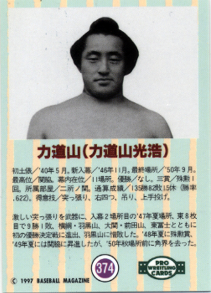★トレカ★BBM97プロレス★スモウレスラー【#374 力道山 (力道山光浩)】★