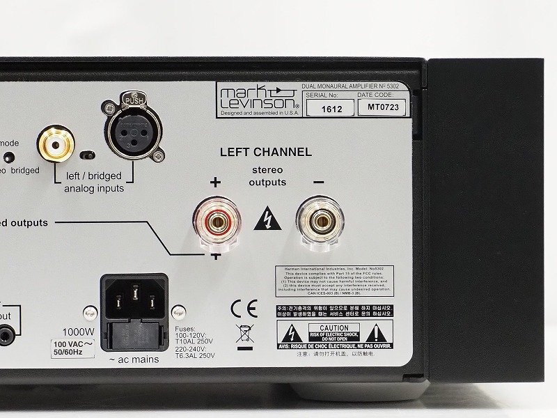 ■メーカー : Mark Levinson ■型番 : No.5302 ■外径寸法 : W438×H145×D527mm ■重量 : 31.7kg 【商品の状態 当店での確認内容】 動作確認済みとなり状態よく美品と思われます。 「商品の状態」に関しましては当方主観の目安となります。外観などは中古品で個人差もありますので詳細は画像にてご判断ください。 画像にて不明な点はご質問下さい。 出品商品は画像のものですべてになります。画像に写っているもの以外は付属いたしません。 ※注意※ ヤフオクのシステム上、送料表記が送料未定となっておりますが、送料に関しては全て有償となりますので下記を参照下さい。 【送料 全国一律 6,050 円 沖縄、離島は別途お見積り】 ※送料がお得になるサービスです(下取りシステムのご案内です) ストア決済利用時にクレジットカードやPayPay残高/PayPayクレジットを利用の方は留意点がございますのでこちらを参照上ご利用ください。 当ストアでは商品を安全にお届け出来るよう提携運送会社と協議の上、発泡緩衝材や強度段ボールの使用等 運送会社が指定する梱包方法や資材を採用しております。 より安全にお届け出来るよう商品仕様により梱包サイズが大きくなる場合や個口数が増える事がございます。 【当ストアオークションルールを入札前に必ずご確認ください。】 【落札後の取引手順】 ・落札後は取引ナビにて、必要事項をご入力後、送信ください。 取引終了後48時間(土、日は除く)以内に入力をお願い致します。 ※ご連絡が頂けない場合は落札者様都合でのキャンセルとさせていただきます。 ・落札代金(商品代金+消費税+送料)の入金をお願い致します。 ※大型商品の場合は送料確定後の決済となる為取引ナビを入力頂き、当ストアより送料のご案内が来るまでお待ちください。(土曜、日曜、祝日の場合は翌営業日より順次ご案内いたします) ・お支払い方法はクレジットカード/PayPay残高/PayPayクレジット/PayPay銀行/ゆうちょ銀行のみです。 ※商品代金引換(代引き)のお取り扱いはしておりません。 ※領収証の発行が必要な方はご連絡ください。 ※銀行振込の際の振込手数料はご負担願います。 ・入金確認後に出荷手配を致します。 (原則入金確認後3営業日以内に発送いたしますが、大型や重量のある製品はお時間をいただく場合もございます。) ・発送は当店指定の運送会社の元払いのみでの発送となります。 ※他の運送会社、送料代引き等は致しかねます。 ※落札者様ご自身での運送会社の手配いただく事も可能ですが荷物事故の責任の所在の問題上、梱包は致しかねます。 ※店頭にお越し頂き手渡しも可能(福岡市早良区)です。ご希望の方はご落札後にご連絡下さい。 ・大型/重量物商品の送料につきましては商品の特性上、荷降ろし状況等により送料が大きく前後し運送業者に別途見積りが必要な為、早めのお問い合わせにてお見積り上、入札をお願い致します。 【初期不良の保証について】 ・商品到着後の初期動作不良、また配送中の事故による破損、不具合が有る場合は、商品発送後10日以内に当ストアまでご連絡ください。当ストアでは修理での対応を優先させて頂きますが、修理不可の場合は全額返金させて頂きます。 (商品代金+消費税+送料のお支払い頂いた金額となります) 【初期不良の保証の対象外について】 次の場合は保証の対象外となりますのご留意ください ・ジャンク商品、現状商品、難あり商品での出品商品。 ※難あり商品に関しましては動作確認時に一部動作不良が確認された商品になり、記載している動作確認以外にも、動作不良がある可能性もございます。こちらに関しましても保証対象外となりますことをご理解ください。 ・年代物のオーディオなどで、当店にてわからない範囲で部品が交換されている場合 ・楽器類の特殊機材(マイクロスコープ等)での確認までは行っておりません。気になる方は事前にご質問いただくか、入札をお控えください。 ※初期不良に関しましては【商品の状態】に記載のもの、またそれによって起因する動作不良は対象外です。 ※商品発送後10日を過ぎてのご連絡は対応が出来ませんので、商品が到着しましたらお早めに確認をお願い致します。 【メーカー保証の加入・継承】 ・未使用品、展示品やメーカー保証期間が残っている商品に関しまして、メーカー保証の加入、継承が必要な方は、落札後取引ナビ内にて当ストアにお知らせください。商品発送までにご連絡いただけない場合、メーカー保証の手続きを承れない場合があります。 【評価について】 ・評価不要の場合、必ず取引ナビの「要望欄」にてお知らせください。それ以外でご連絡をいただいた場合、対応できない可能性がございます。一度行った評価はシステム上取り消しが行えませんのでご了承ください。 【入札削除・キャンセルについて】 ・入札後はトラブル防止の為いかなる事情がおきましても入札を削除等は致しておりません。 ご検討の上入札をお願い致します。間違った際の入札