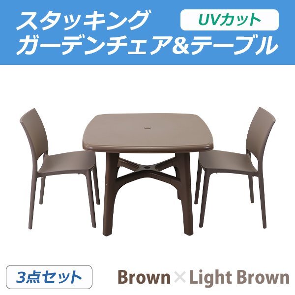 | 商品名 | 送料無料 プラスチックチェア ガーデンチェア ガーデンテーブル 3点セット UVカット パラソル使用可 ガーデンテーブルセット スクエアテーブル 2脚 軽量 ガーデン テーブル ポリプロピレン PP プラスチック p23chb |