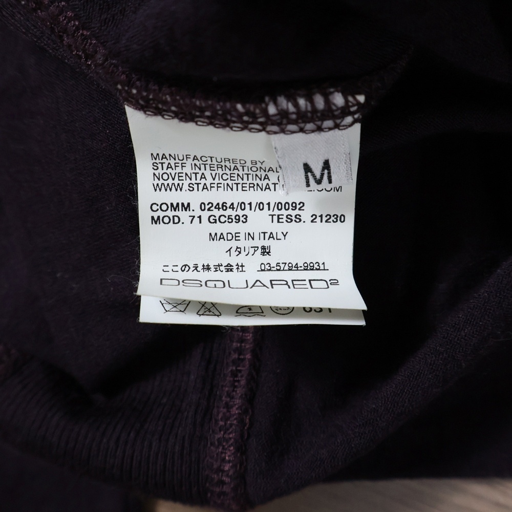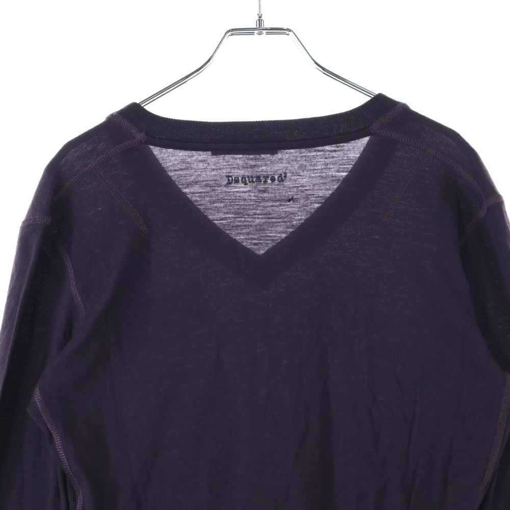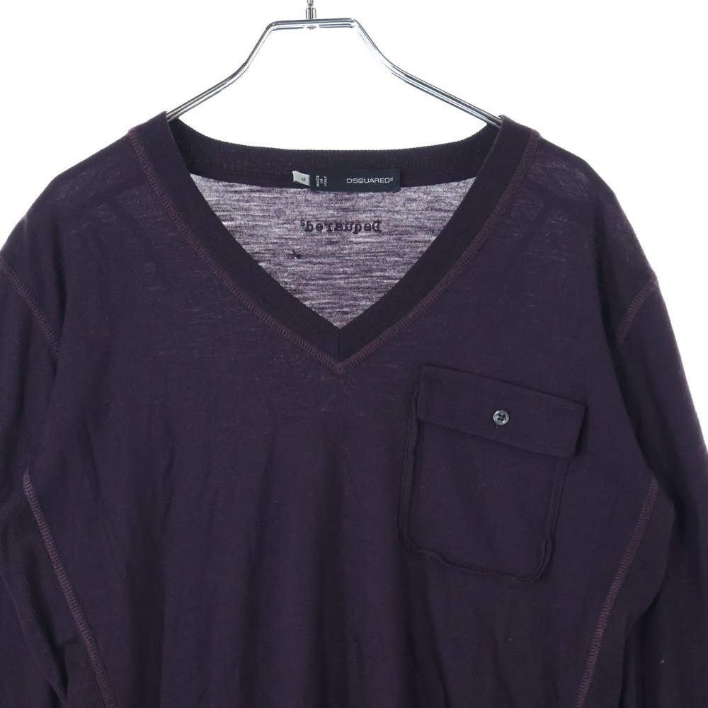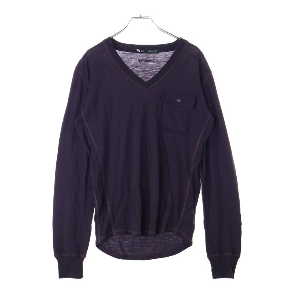 DSQUARED2 ディースクエアード ここのえタグ 1ポケット Vネック ロングスリーブ ニットカットソー バーガンディ