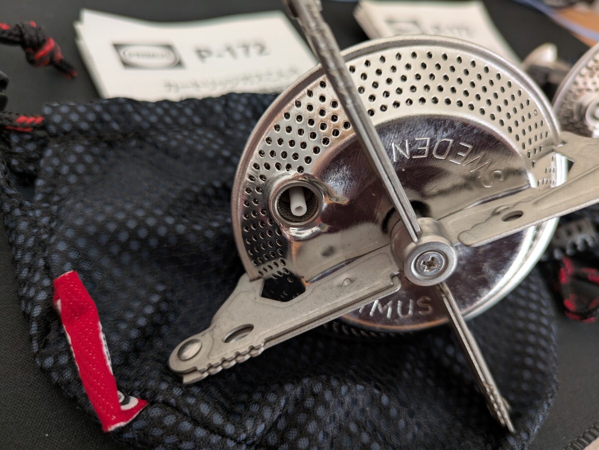 ゴトク: プリムス伝統のX字型ゴトクを採用しており、風防の役割も兼ねています。