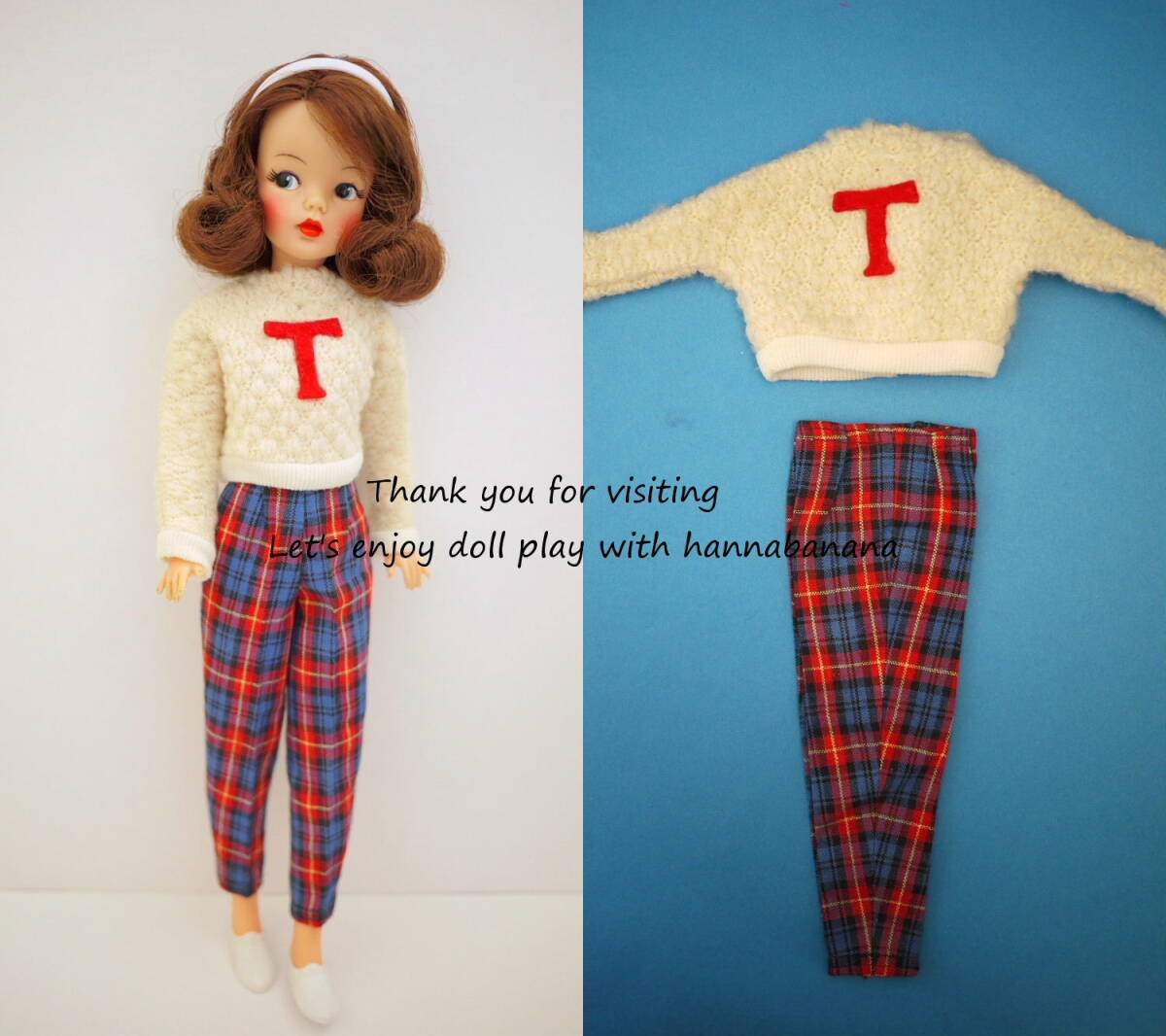 ヴィンテージ タミーちゃんアウトフィット*Cheerleaderセーター+上品なチェックSlacksはシルエットもとても綺麗です。