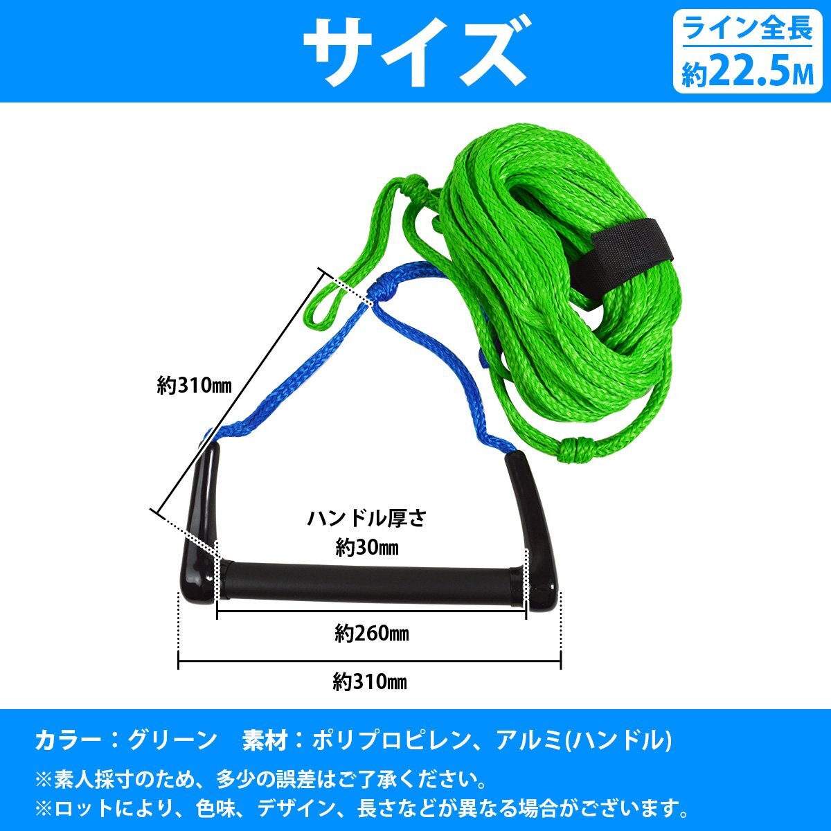 12インチ 23m 75ft ウェイクボード ハンドル ウェイク ハンドル ライン グリップ ロープ セット マリンジェット 緑 グリーン