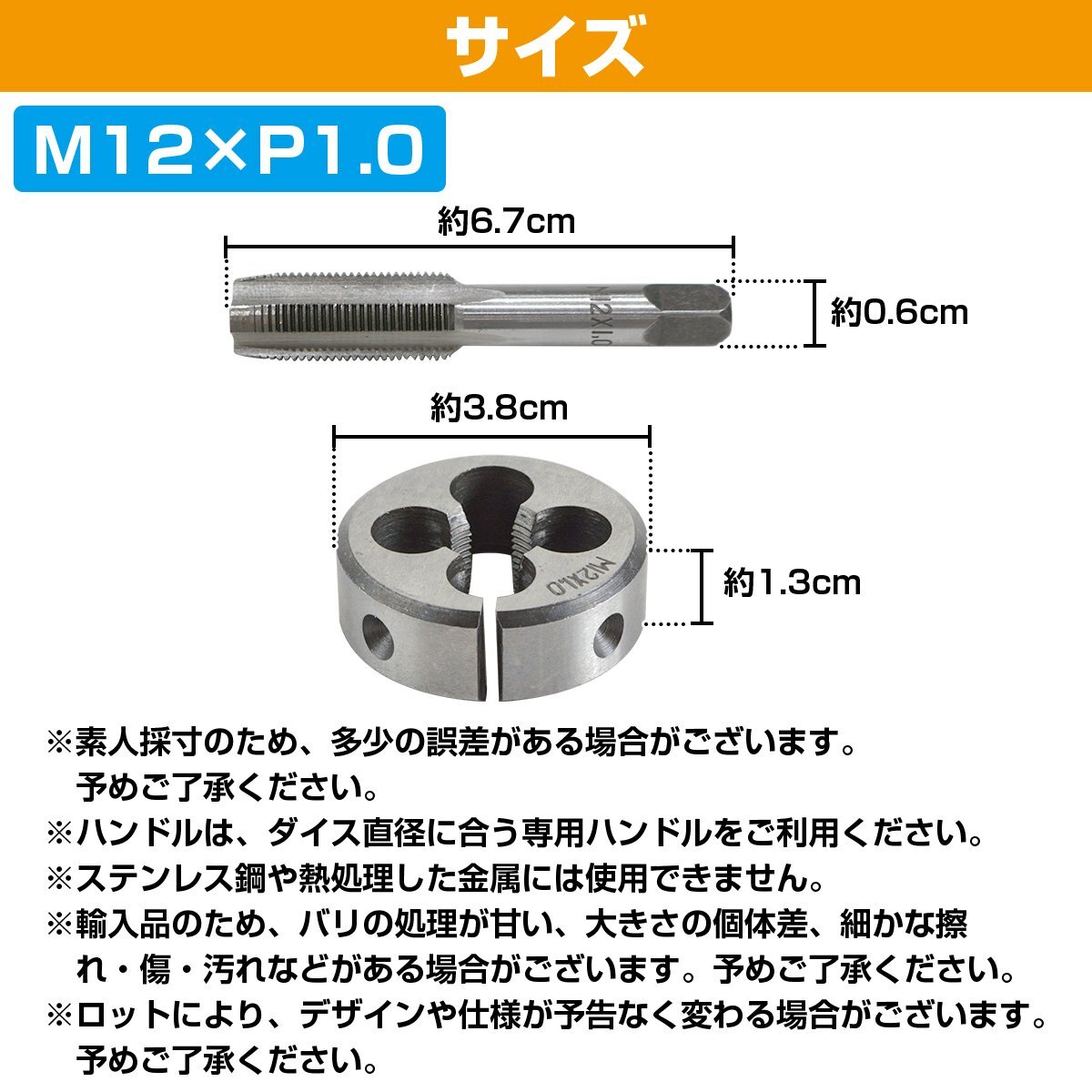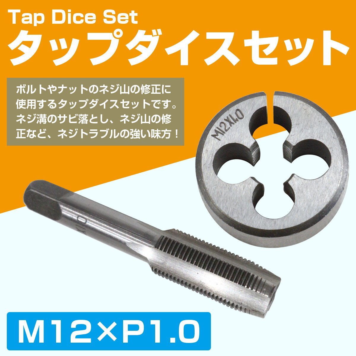 『M12×P1.0』タップダイス セット 目立て ネジ 山 修正 めねじ 再生 ねじ 穴 修復 補強 耐久性向上 雌ネジ 補修 工具 キット