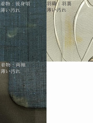 | 【着物】 身丈 148.5cm(肩から) 裄丈 68cm 袖丈 49cm 縫込み 5cm 袖幅 34.5cm 前幅 27cm 後幅 32.5cm 着物縫いこみ 内揚げ 0cm 裄 お袖側 約2cm 身頃側 約2cm 【羽織】 身丈 94cm(肩から) 裄丈 65.5cm 袖丈 50cm 縫込み 4cm 袖幅 35cm 前幅 21cm 後幅 32.5cm 裄 お袖側 約1cm 身頃側 約1cm 《 サイズについてはこちら 》 |