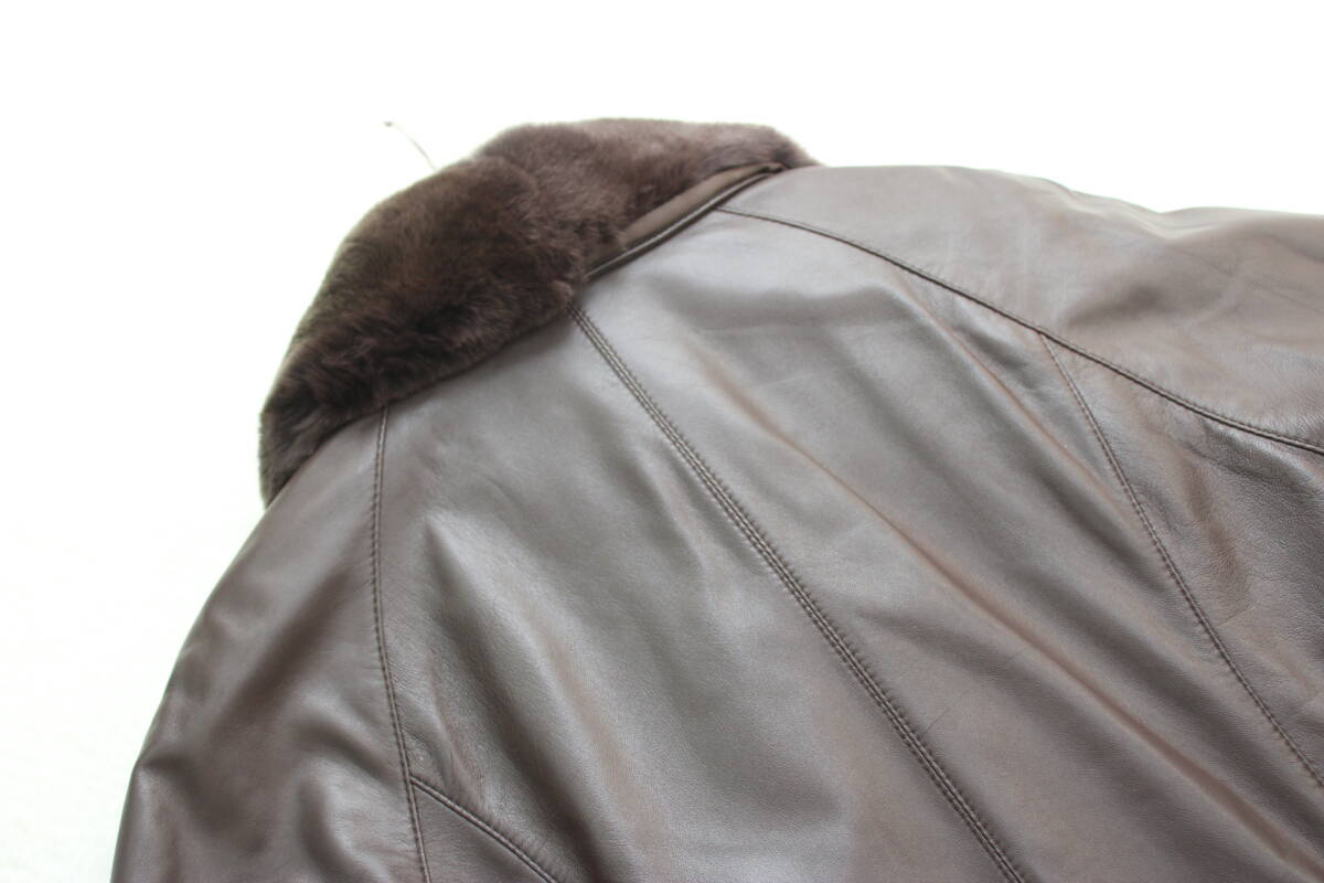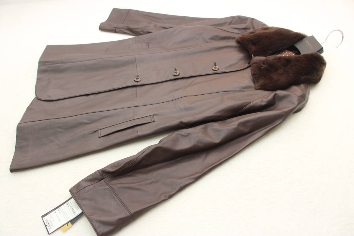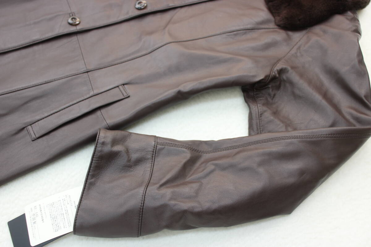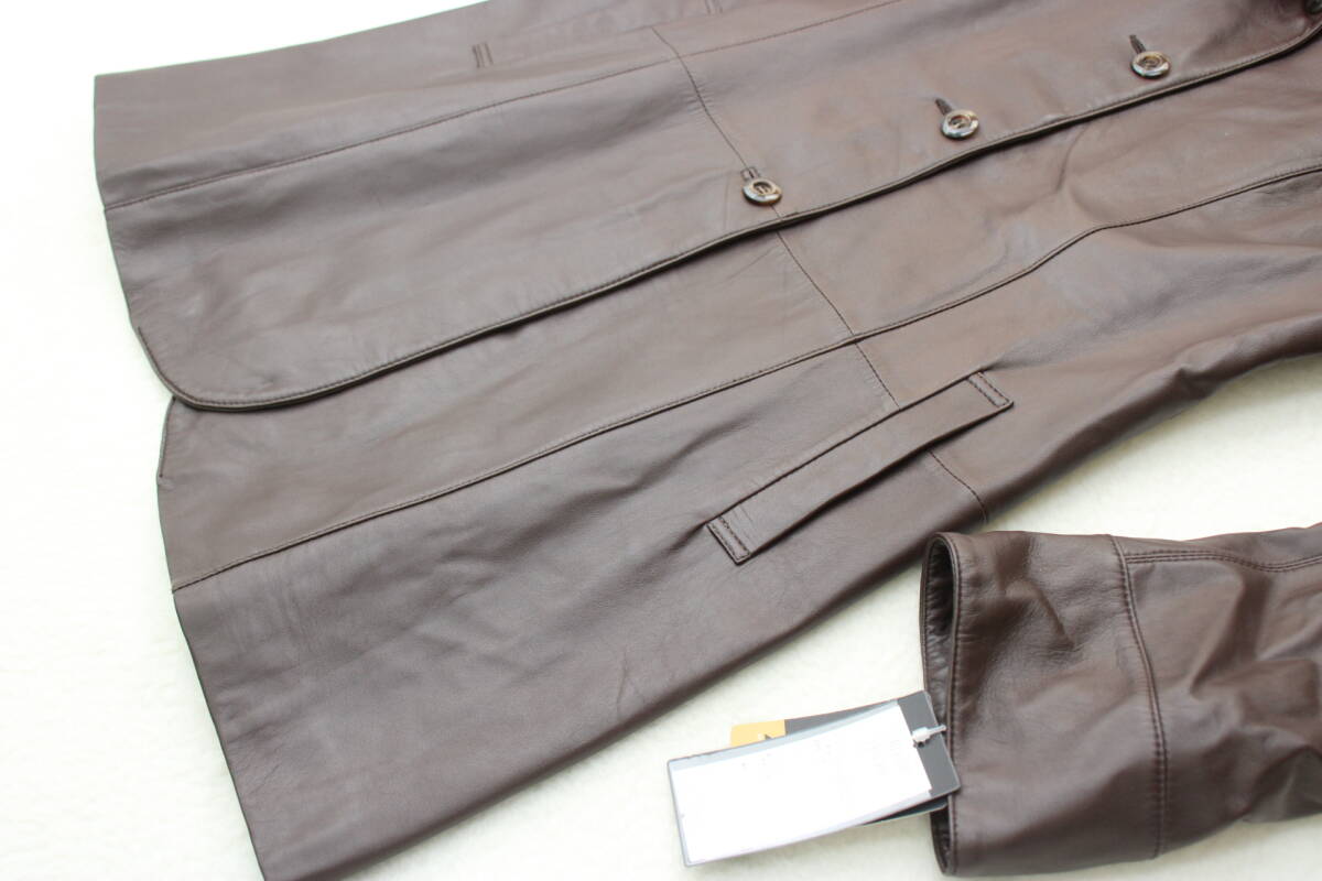 6699 新品タグ付き 高級羊革レザーロングジャケット ダークブラウン11号サイズ