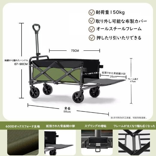 アウトドアワゴン キャリーワゴン キャリーカート 後ろ開け 耐荷重150kg 折りたたみ ワイドタイヤ キャンプ