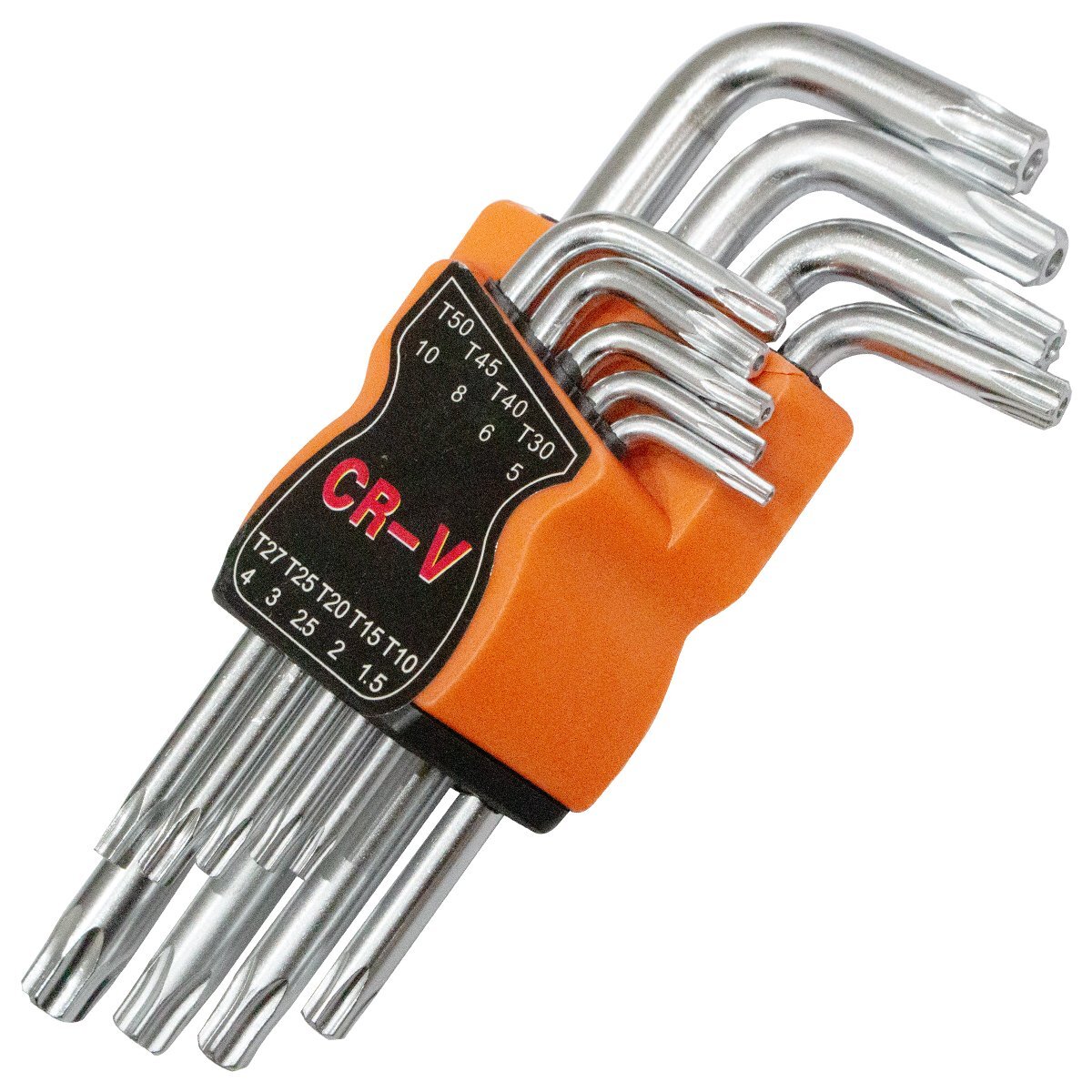 【送料250円】ショート トルクスレンチ いじり止め 穴付 星型 9本 ヘックスローブ T10/T15/T20/T25/T27/T30/T40/T45/T50 車 バイク 自転車