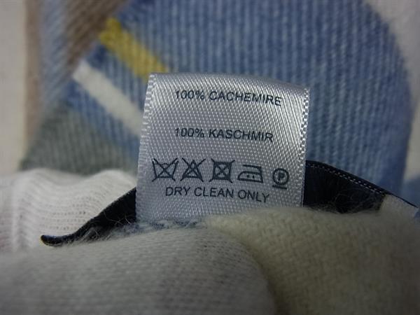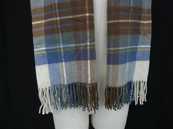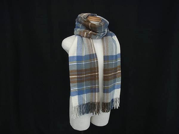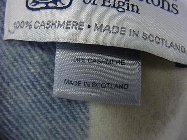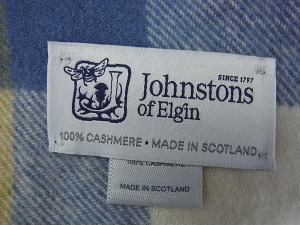 1円 ■極美品■ Johnstons of Elgin ジョンストンズ オブ エルガン カシミヤ100% チェック柄 フリンジ マフラー ストール ブルー系 FL9606