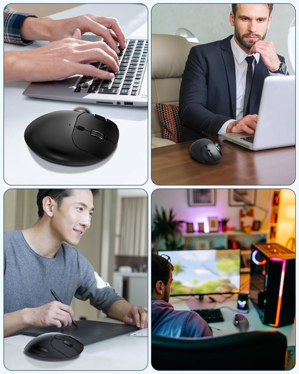 【手首と腕の負担を軽減する設計】マウスを動かす必要がないため、手首や腕にかかる負担を最小限に抑えた設計となっています。長時間マウスを使用していると、手首や肩に痛みを感じることがありますよね?そんなお悩みにぜひおすすめしたいのが、疲れを軽減し、スペースを取らないトラックボールマウスです。EWIN製トラックボールは、親指でボールを転がすことでカーソル操作が可能。また、手にしっくりとなじむエルゴノミック形状を採用しており、快適な操作が期待できます。手首や肩の負担を感じる方にぴったりの解決策です。負担を軽減しながら、効率的で快適な作業を実現するために、ぜひEWIN製トラックボールをお試しください。
