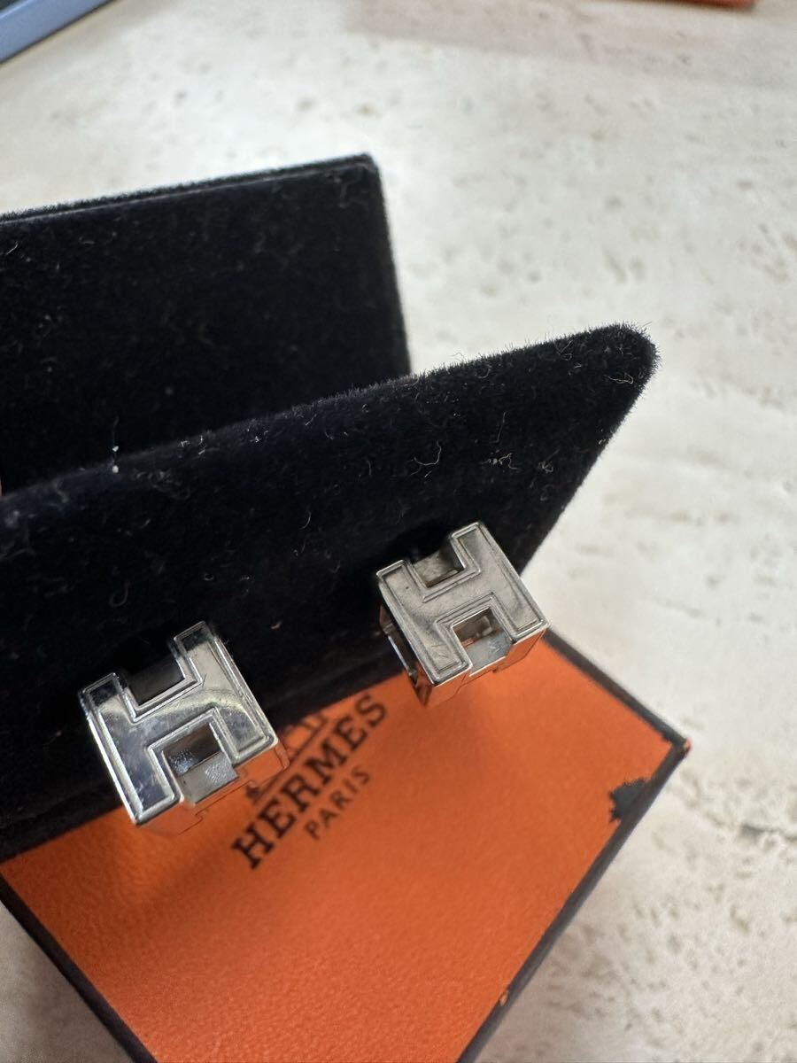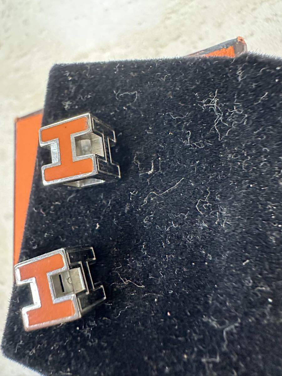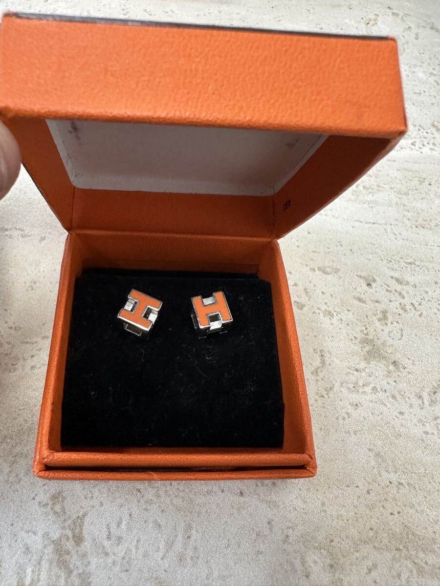 HERMES エルメス カージュドアッシュ Hキューブ Hロゴ ピアス シルバー色 オレンジ