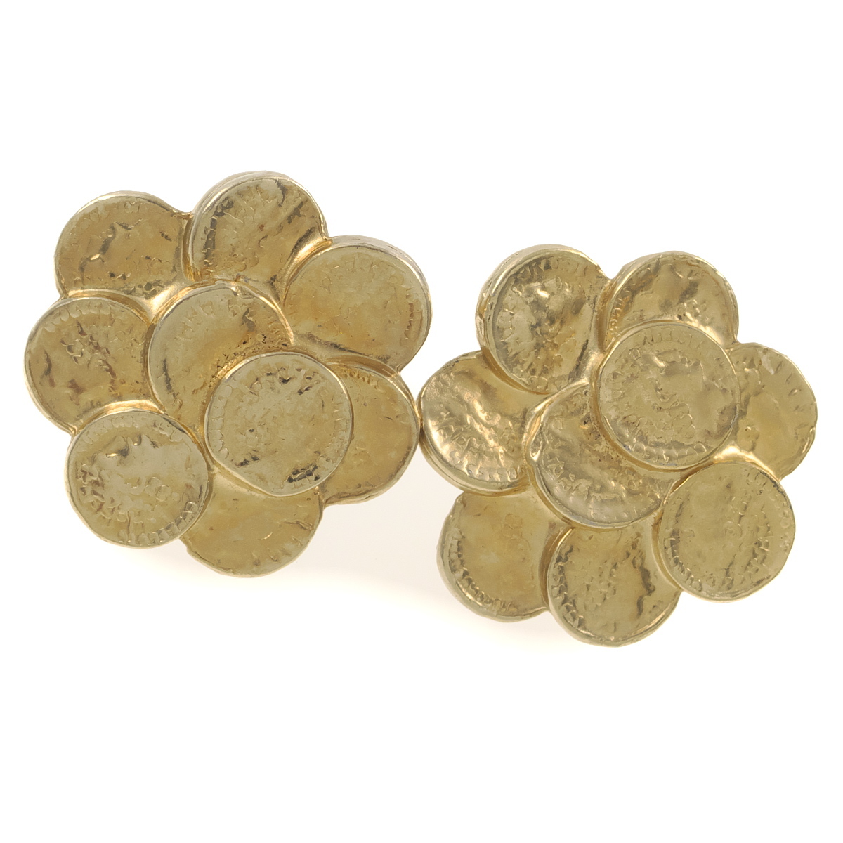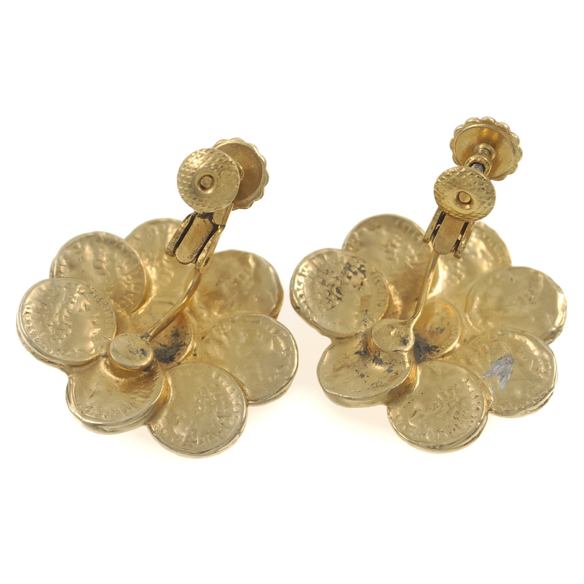 A10866◆【ACCESSOCRAFT NYC】◆ ローマコインのフラワーモチーフ ゴールドトーン 花 ヴィンテージイヤリング ◆