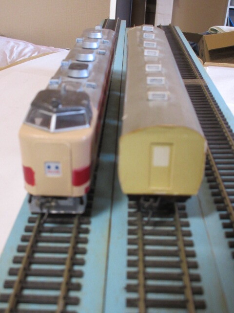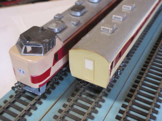 クハ481と車種不明のペーパーキット2両セットです。サンプル写真や下記の説明のように古く欠点の多い製品ですが、作成者の熱意が伝わる趣のある車両となっています。 (商品説明)以下の説明を熟読願い、御納得いただける方のみご購入にお進みください。 ①鉄道模型に対して全くの初心者の方や軽微な補修・修理が苦手な方は、ご購入をお控えになった方が、無難です。 ②2両共、「汚れ」「小傷」「塗装のイタミ」が発生しております。両車共、ペーパーキット組立品です。製作から長い年月が経過しており汚れが付着しています。両車とも、床板は、木製。カプラーは両端共、ベーカーカプラーです。走行は、スムーズです。(両車共、トレーラー車です)室内灯、前照灯等のライト類は、装備していません。1両は、クハ481ですが、もう一両は形式不明の中間車です。 ③衝撃対策を施し手製の箱に入れてお届けいたします。