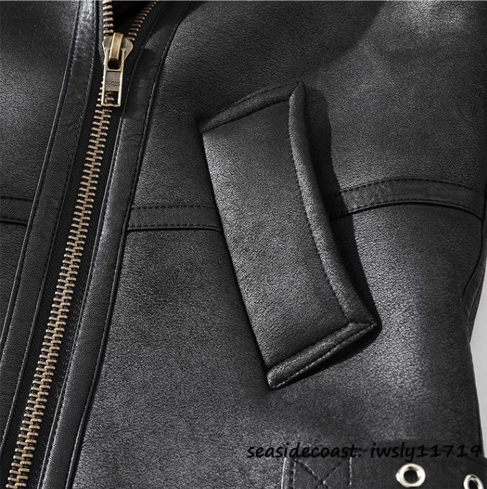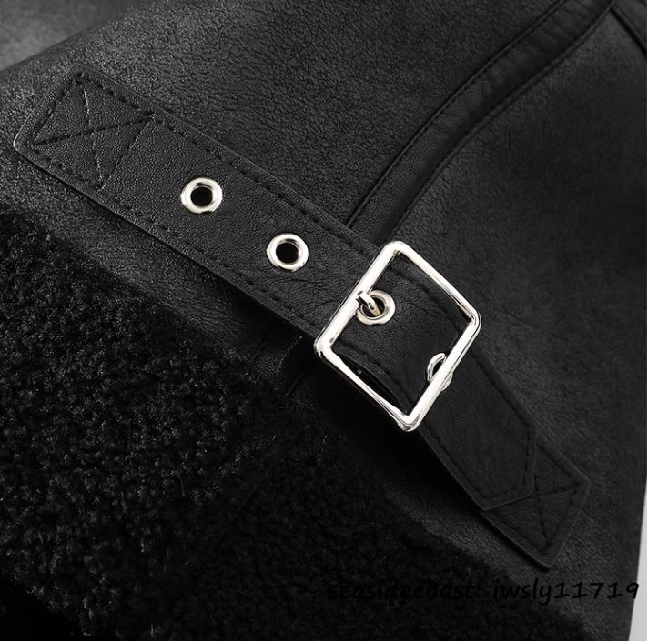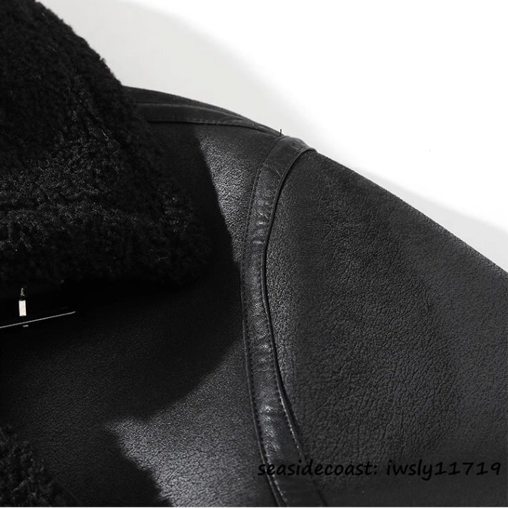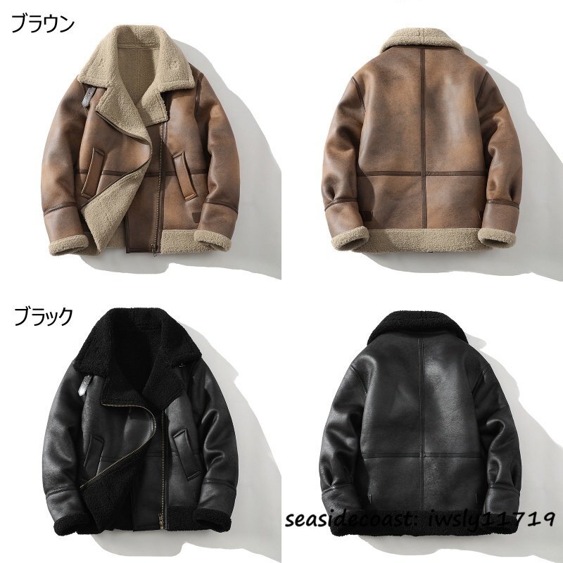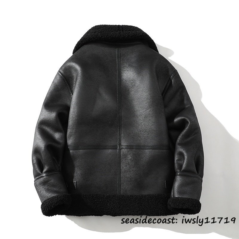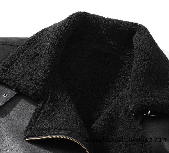 定価12万◆レザージャケット ムートンコート ファーコート 冬新品 毛皮 厚手 防寒 ライダース アウター ジャンバー ブルゾン ブラック XL