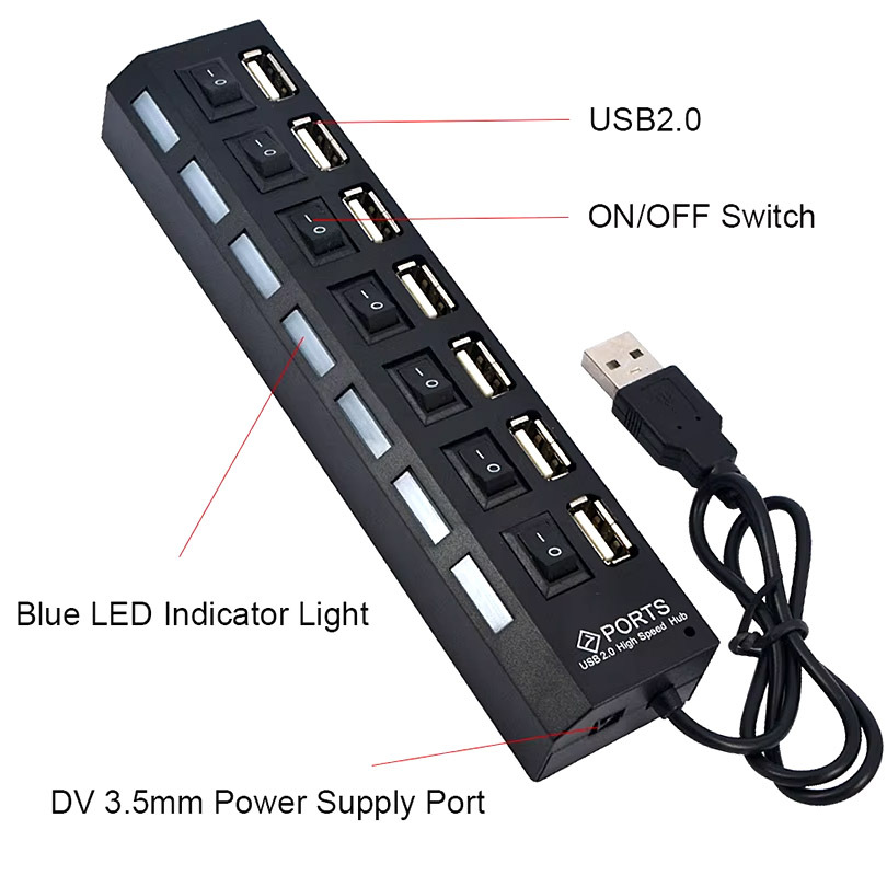 ----------------------- ◆ USB2.0対応の7ポートハブです。各ポートごとにON/OFFスイッチが搭載され、使用しない機器の電源を簡単に切り替えることができます。 ◆ ブルーLEDインジケーターライト付きで動作状態が一目でわかります。 ◆ Windows対応でPC周辺機器の接続に便利。USBメモリやマウス、キーボードなど複数デバイスを同時利用可能です。 ◆ 2点セットでのお届けとなります。 ◆ サイズ / 縦:約16cm 横:約3.5cm コード長さ:約40cm ----------------------- ★ 送料はゆうパケット[匿名配送・追跡番号付]で全国無料です。 #USBハブ #7ポート #USB2.0 #ONOFFスイッチ #LEDライト #PC周辺機器 |