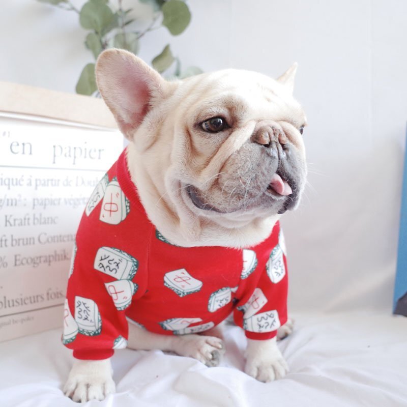 ・モデルの子犬は胸囲 54cm、背丈 32cm、首周り 42cm、体重 13.2kgで、Mサイズを着用しております。軽やかな素材(薄地のコットン)で春から秋にかけて長くご愛用いただける一着です