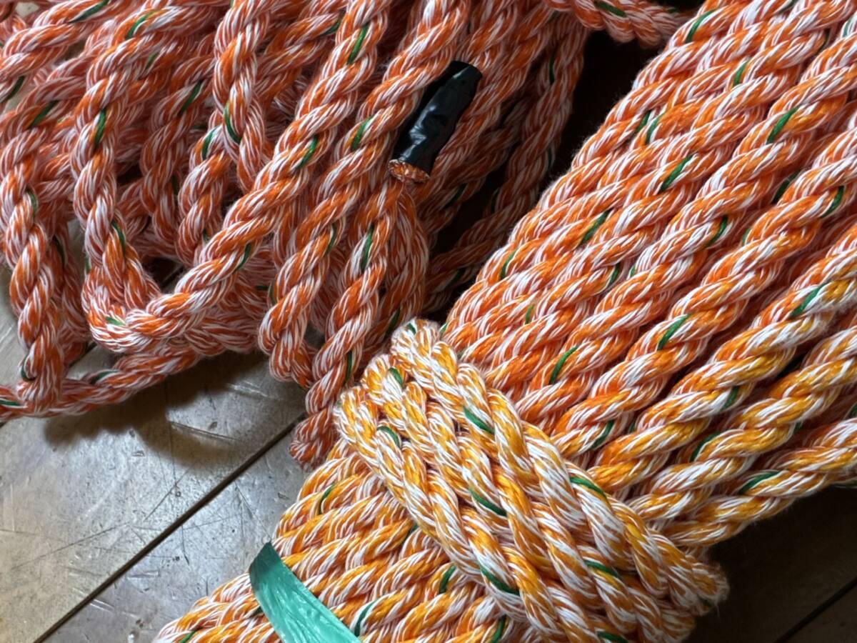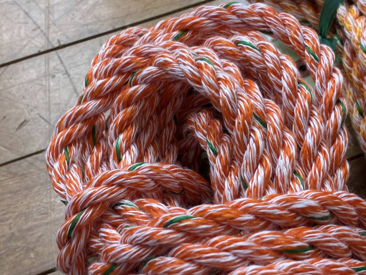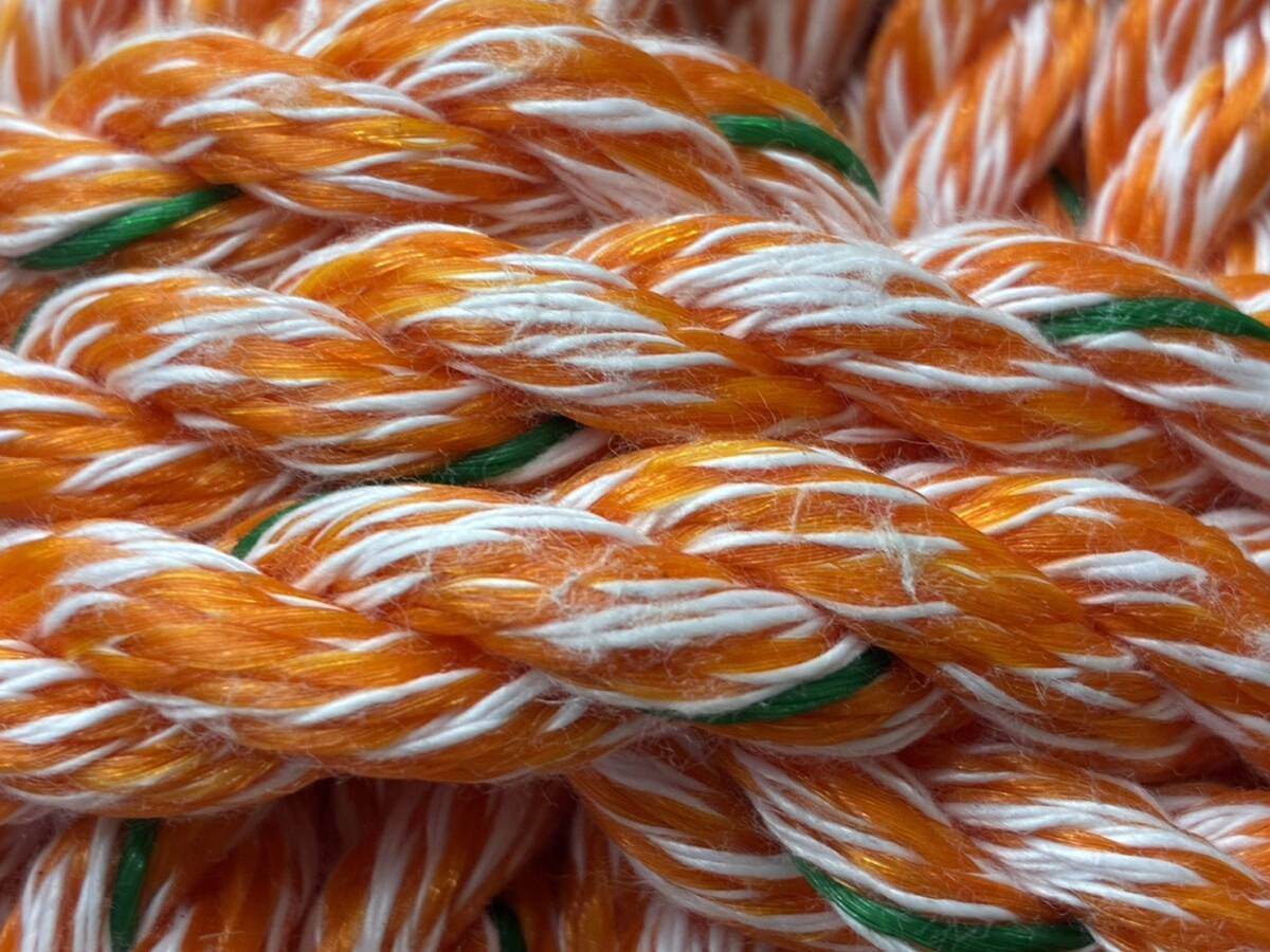 大特価!新品・国産★2巻セット//橙色・白・緑入り/混撚(KP) 三つ打ちロープ★