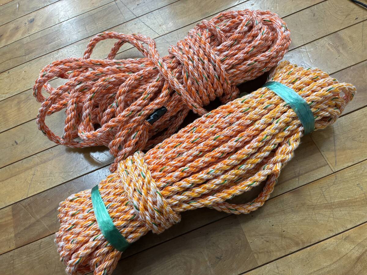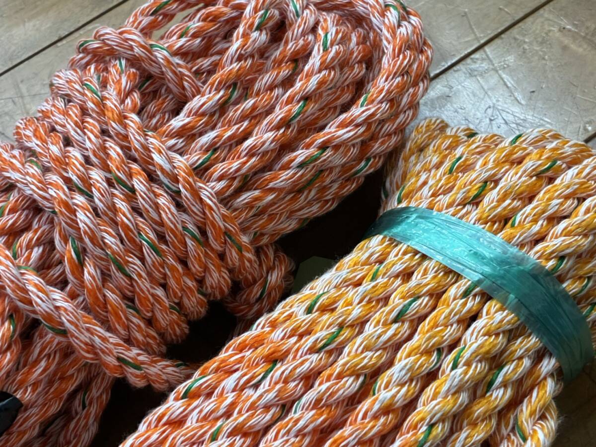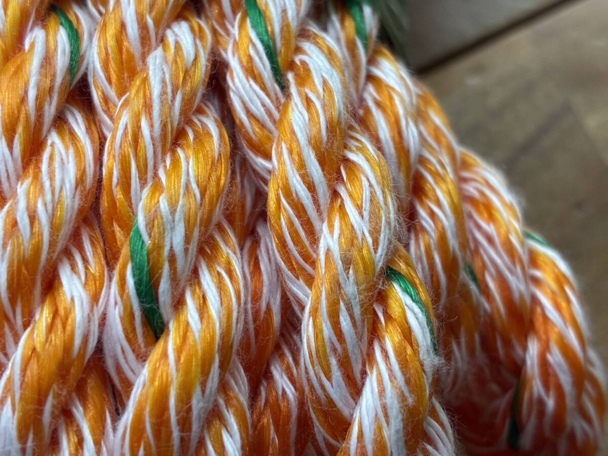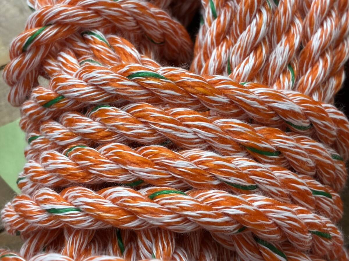 大特価!新品・国産★2巻セット//橙色・白・緑入り/混撚(KP) 三つ打ちロープ★