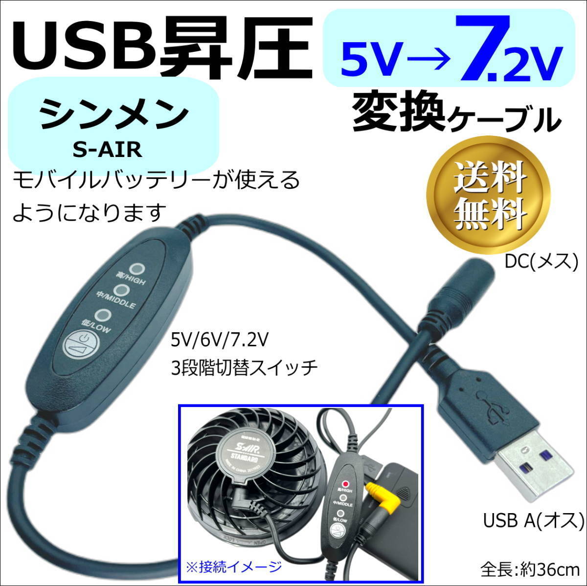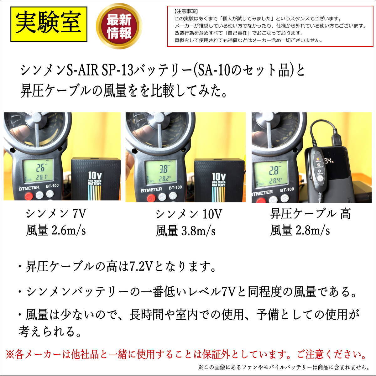 △シンメンS-AIRファン付き作業服のファンでモバイルバッテリーから給電できる3段階昇圧ケーブル USB/DC変換ケーブル
