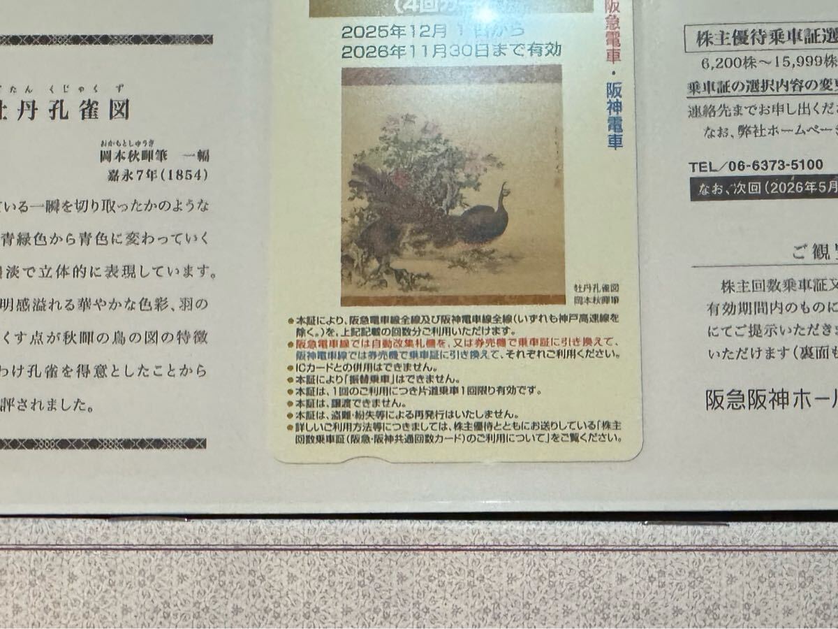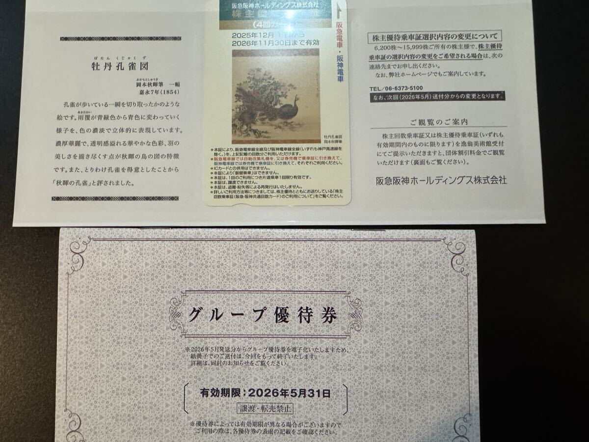 阪急阪神ホールディングス株式会社の株主回数乗車証(4回カード)とグループ優待券のセットです。