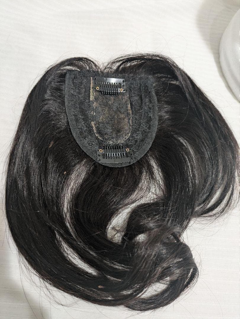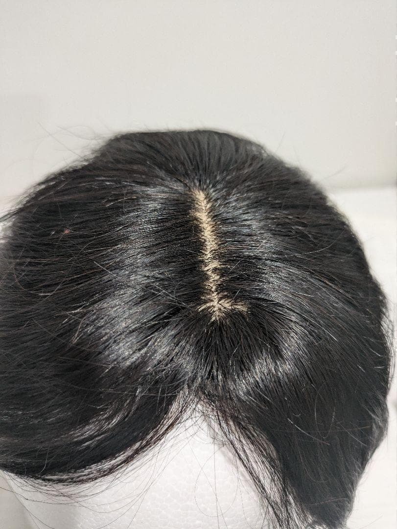 頭頂部ウィッグ 前髪 センター分け 人毛1045 抜け毛 脱毛 黒 産後 A1AF22