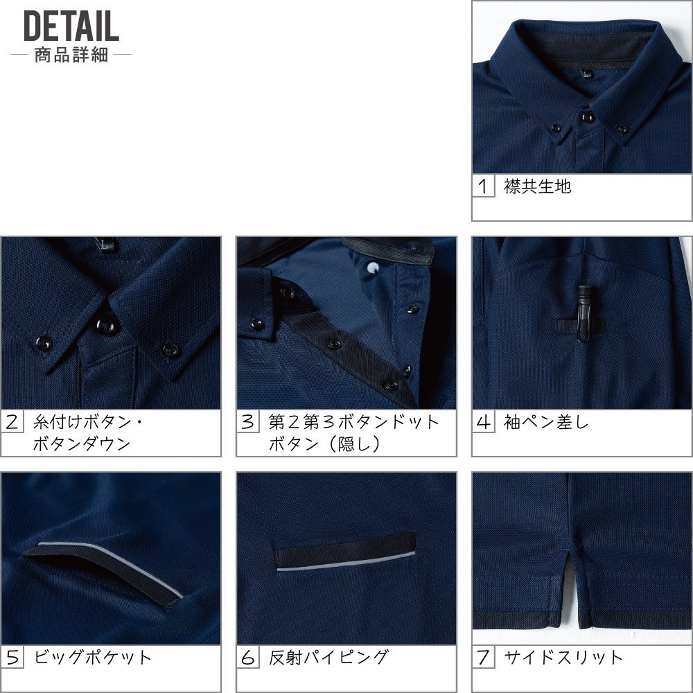 仕様:袖ペン差し ビッグポケット サイドスリット デオドラントテープ 反射パイピング