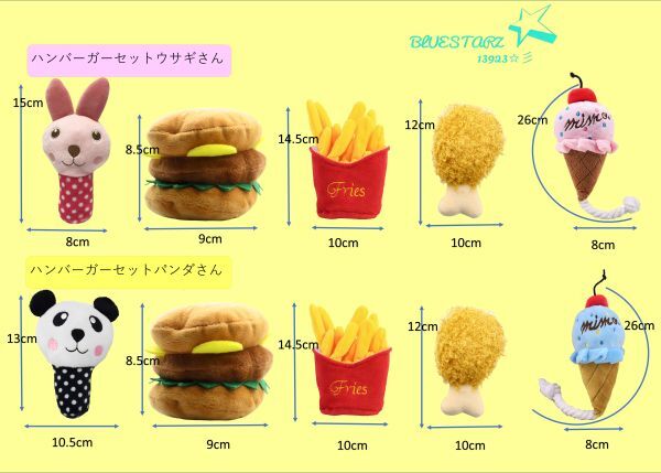 •  愛犬が楽しめる、かわいいハンバーガーセットのおもちゃです!