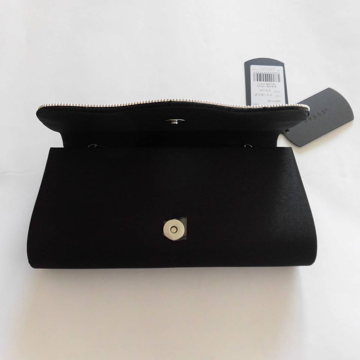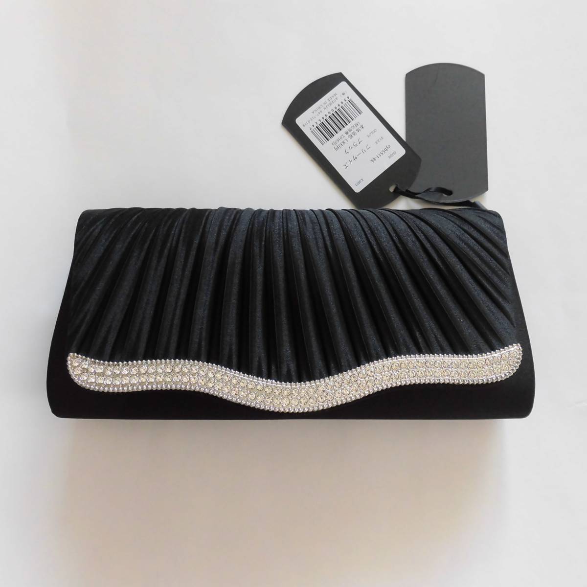 【即決 匿名配送 送料無料】ドレススター ビジューラディアルサテンプリーツパーティークラッチバッグ ブラック 結婚式 入学式 卒業式