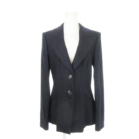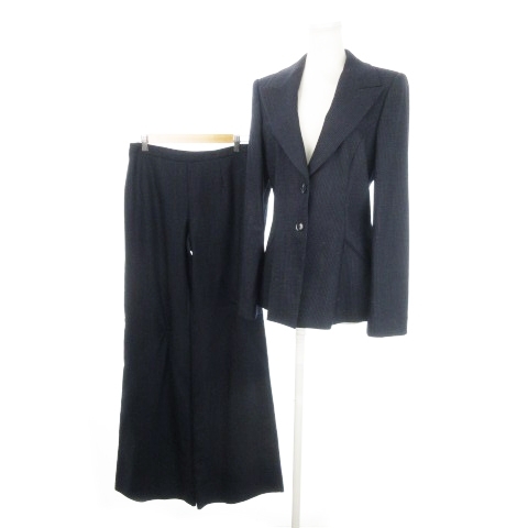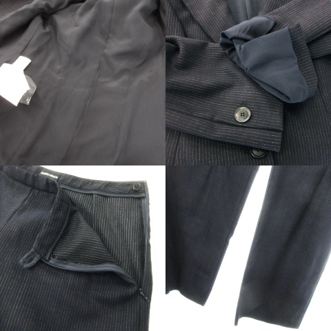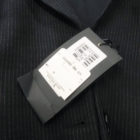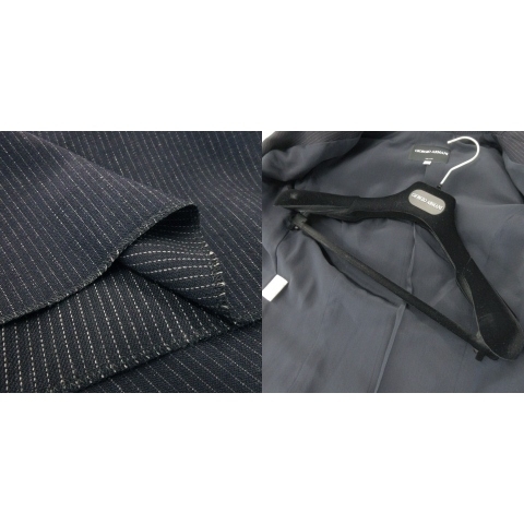 未使用品 ジョルジオアルマーニ シングルスーツ セットアップ ジャケット 総裏地 ワイドパンツ ストライプ ハンガー付き 42 XL 紺