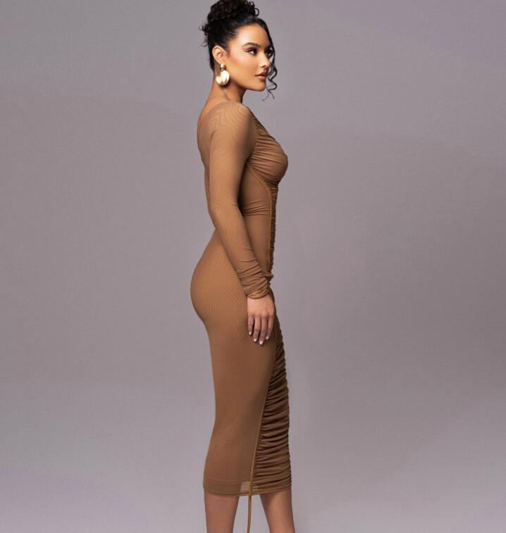 401 ワンピースadiesレディース ◇ 綺麗めシルエット ◇ 素敵   タイト dress   コーヒー