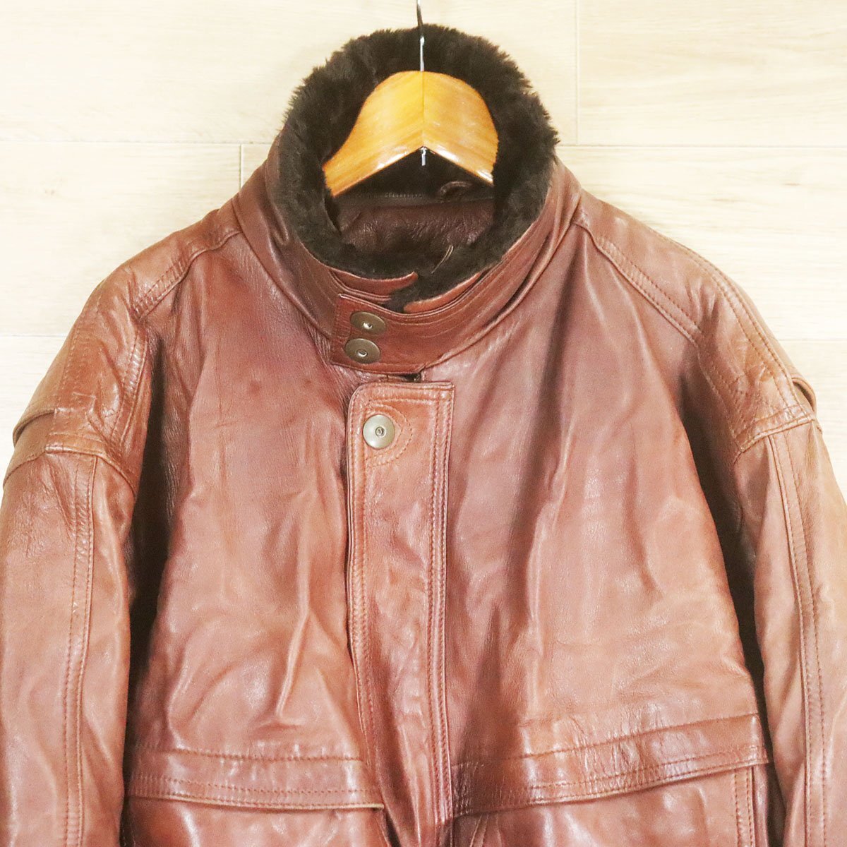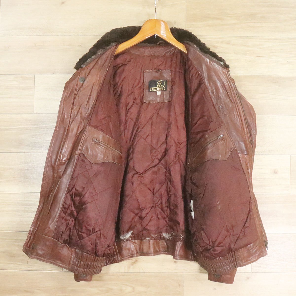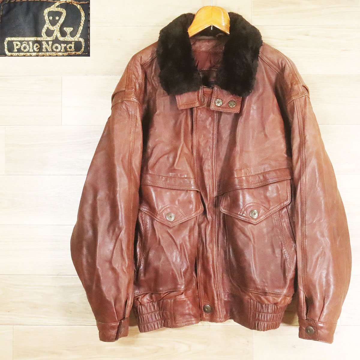 $2T/O10.17-7 ユーロ古着 Ple Nord 襟ボア レザーフライトジャケット 本革 レザージャケット 52 革ジャン 皮ジャン