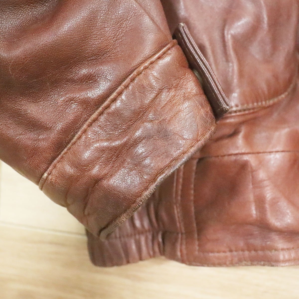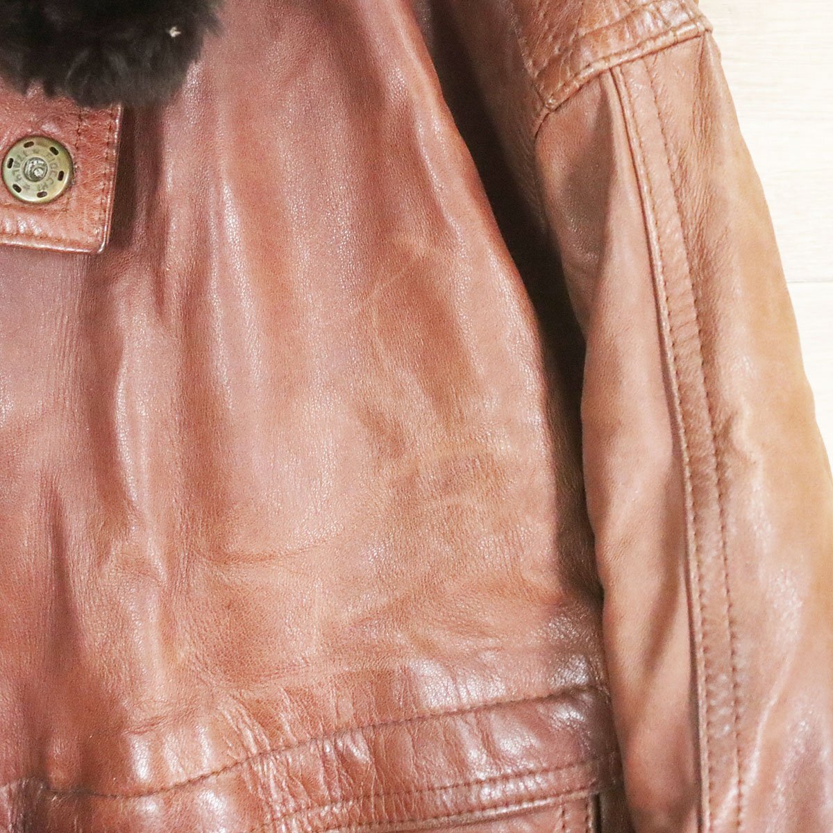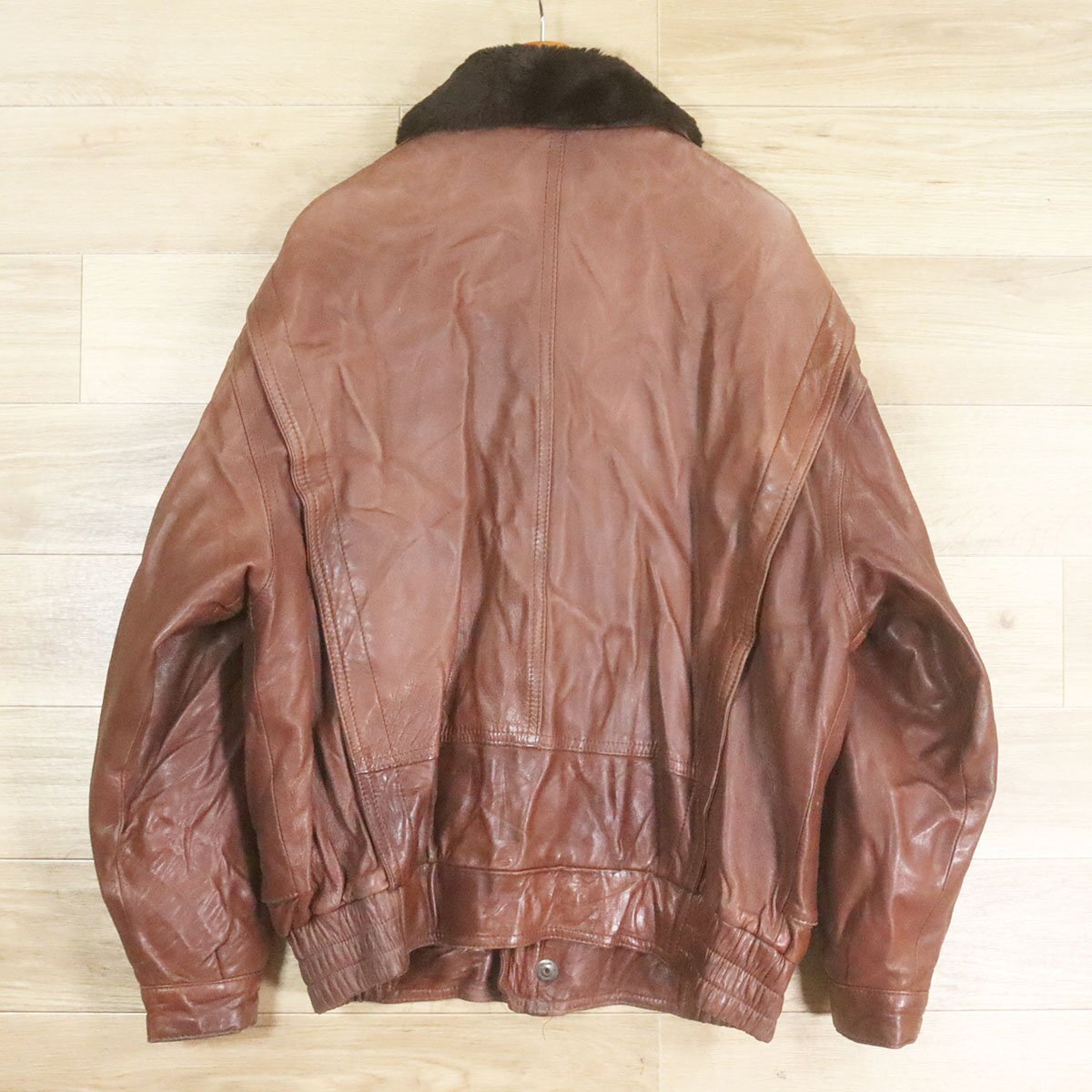 $2T/O10.17-7 ユーロ古着 Ple Nord 襟ボア レザーフライトジャケット 本革 レザージャケット 52 革ジャン 皮ジャン