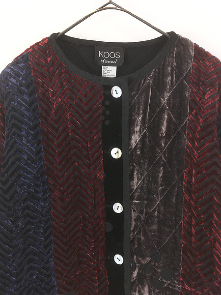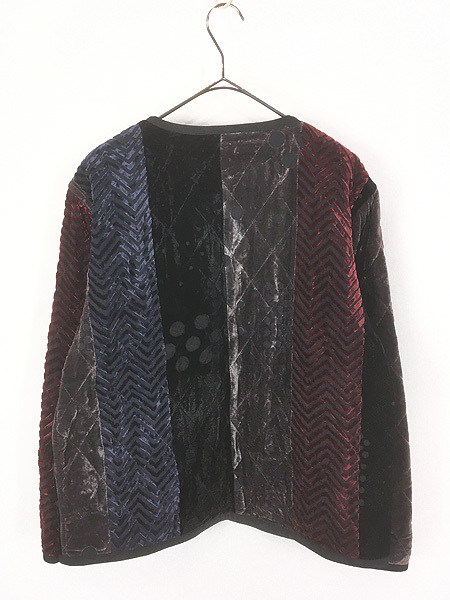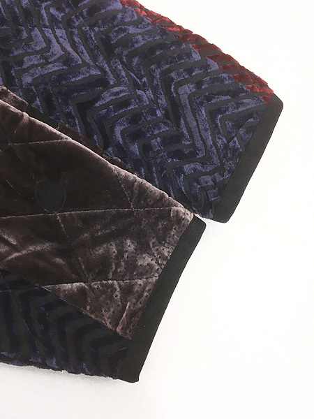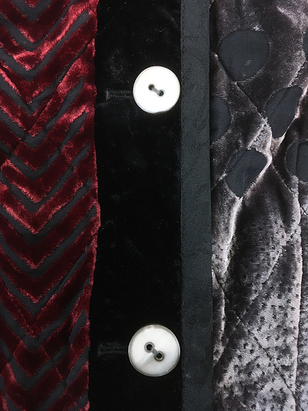 厚すぎない量の中綿入りのキルティング ベロアジャケット。シェルボタン使用。