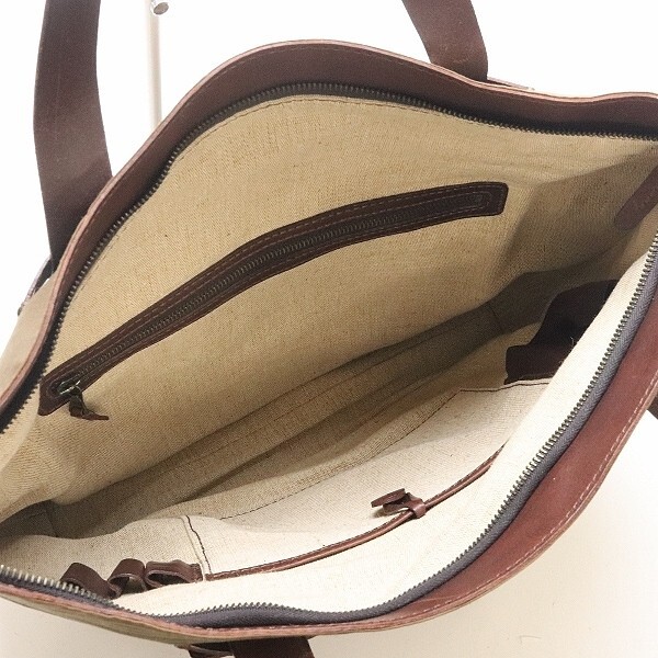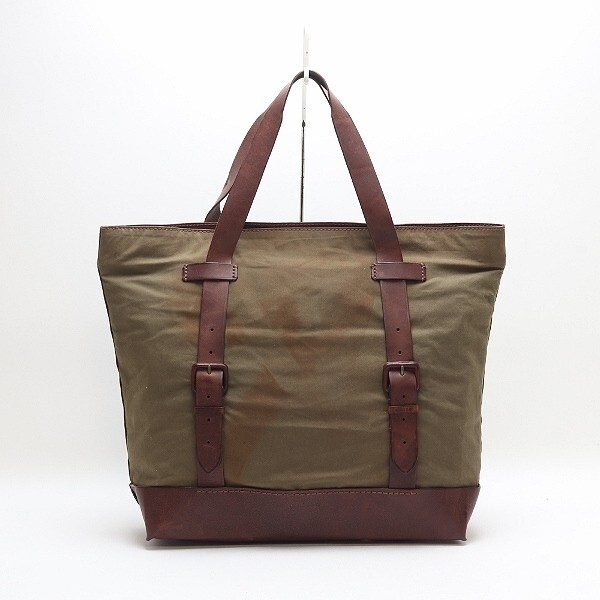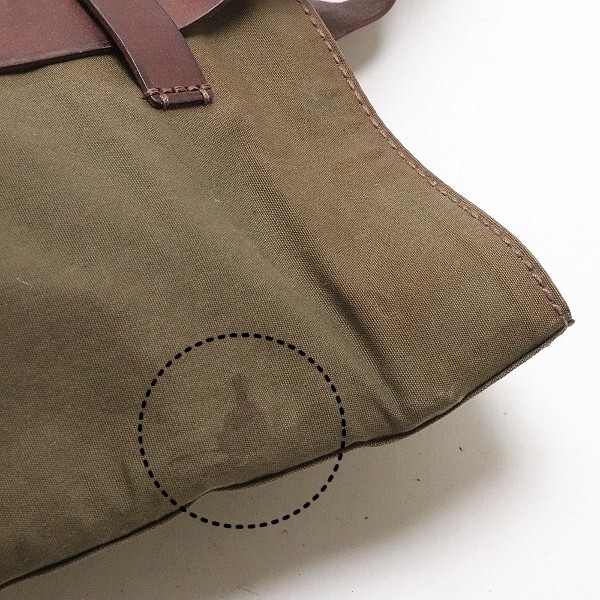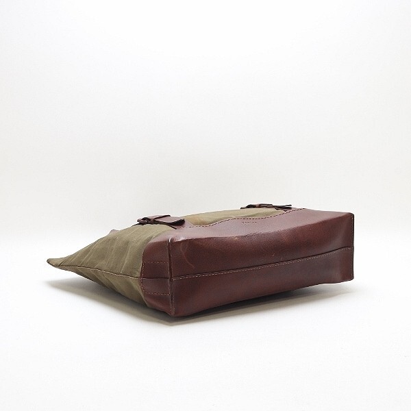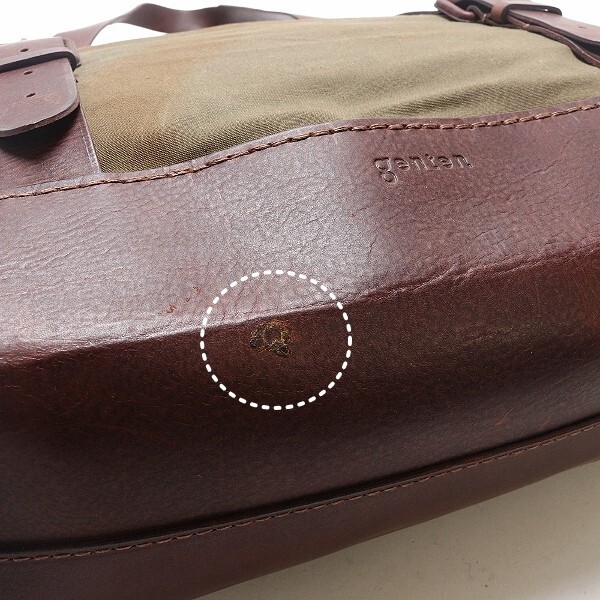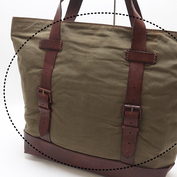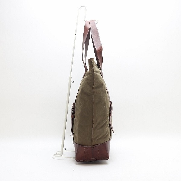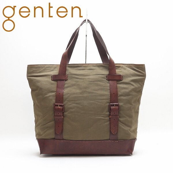 | 【HB209】◆genten ゲンテン キャンバス×レザー 肩掛け ショルダー トート バッグ カーキ×ダークブラウン | |
