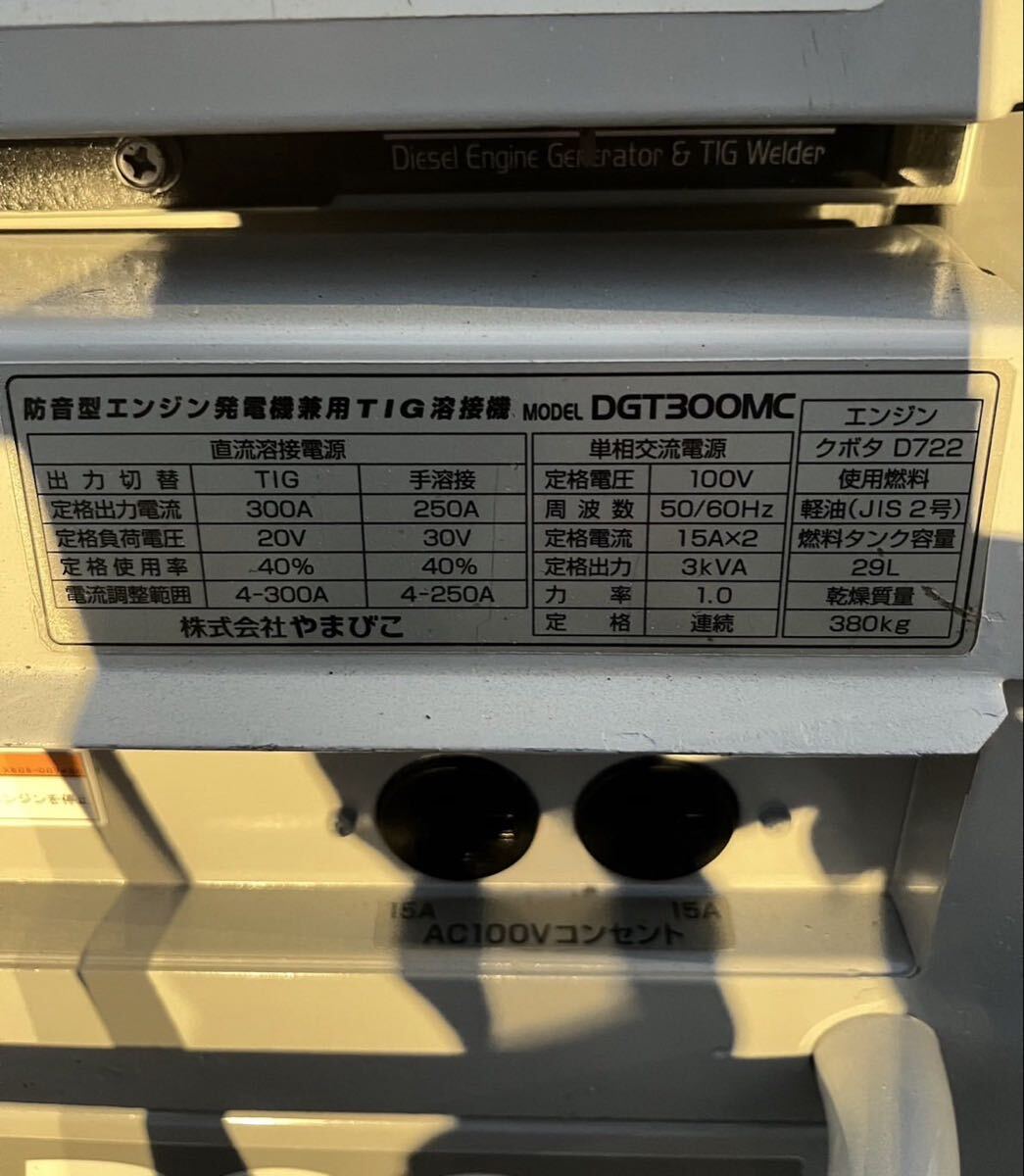 中古。新ダイワ Shindaiwa ディーゼル エンジン発電機 DGT300M TIG溶接 動作確認済み 。